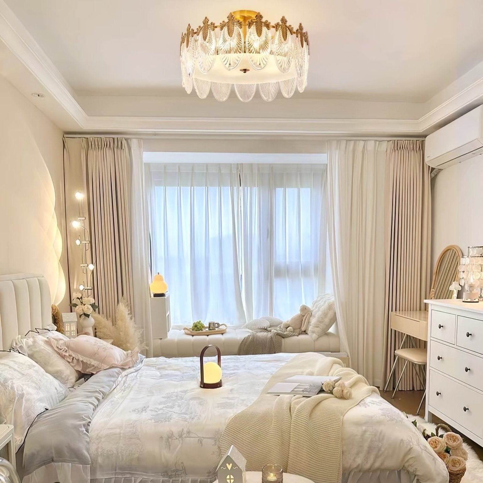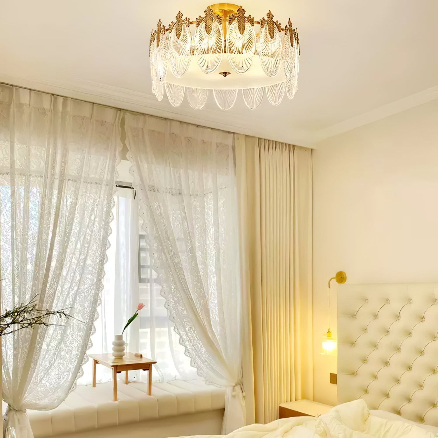 Blomformad glastaklampa i retrostil – lyxig koppar plafond för vardagsrum, matsal och