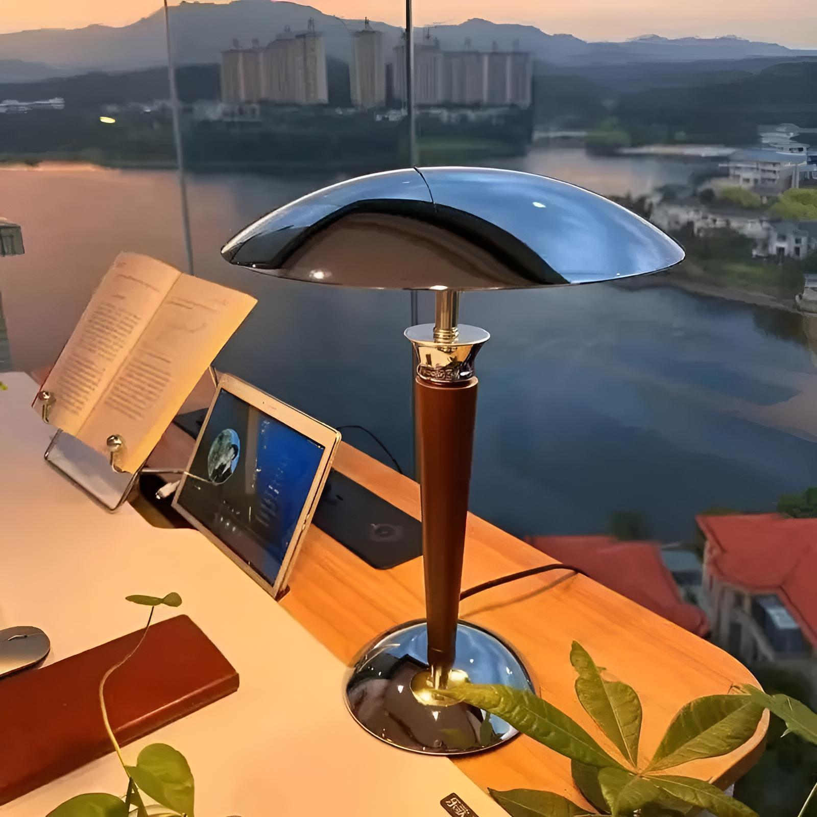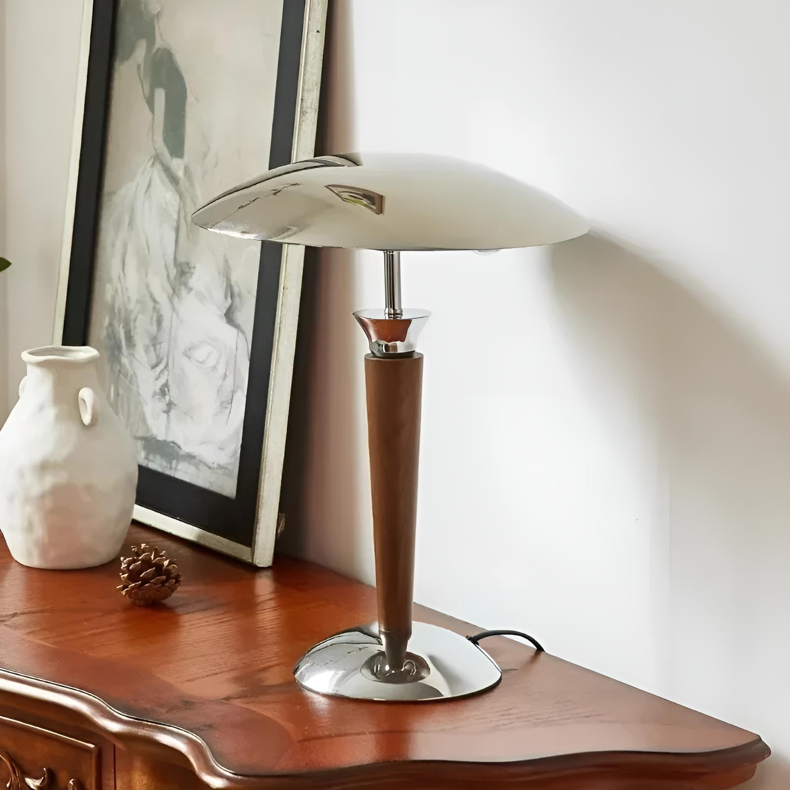 Bordslampa i modern retro design med träfot och metallskärm för sovrum kontor vardagsrum