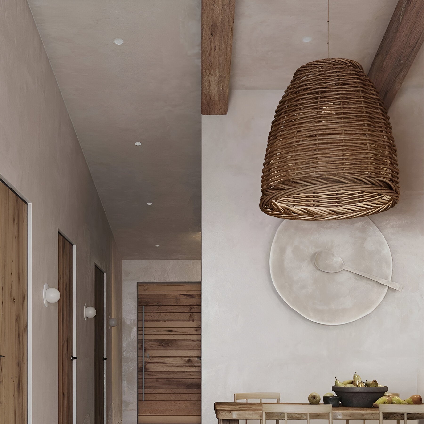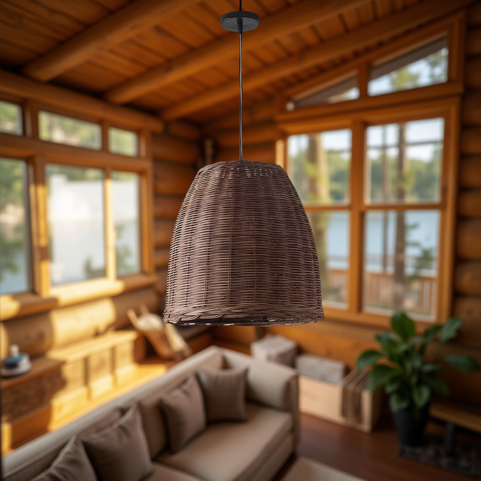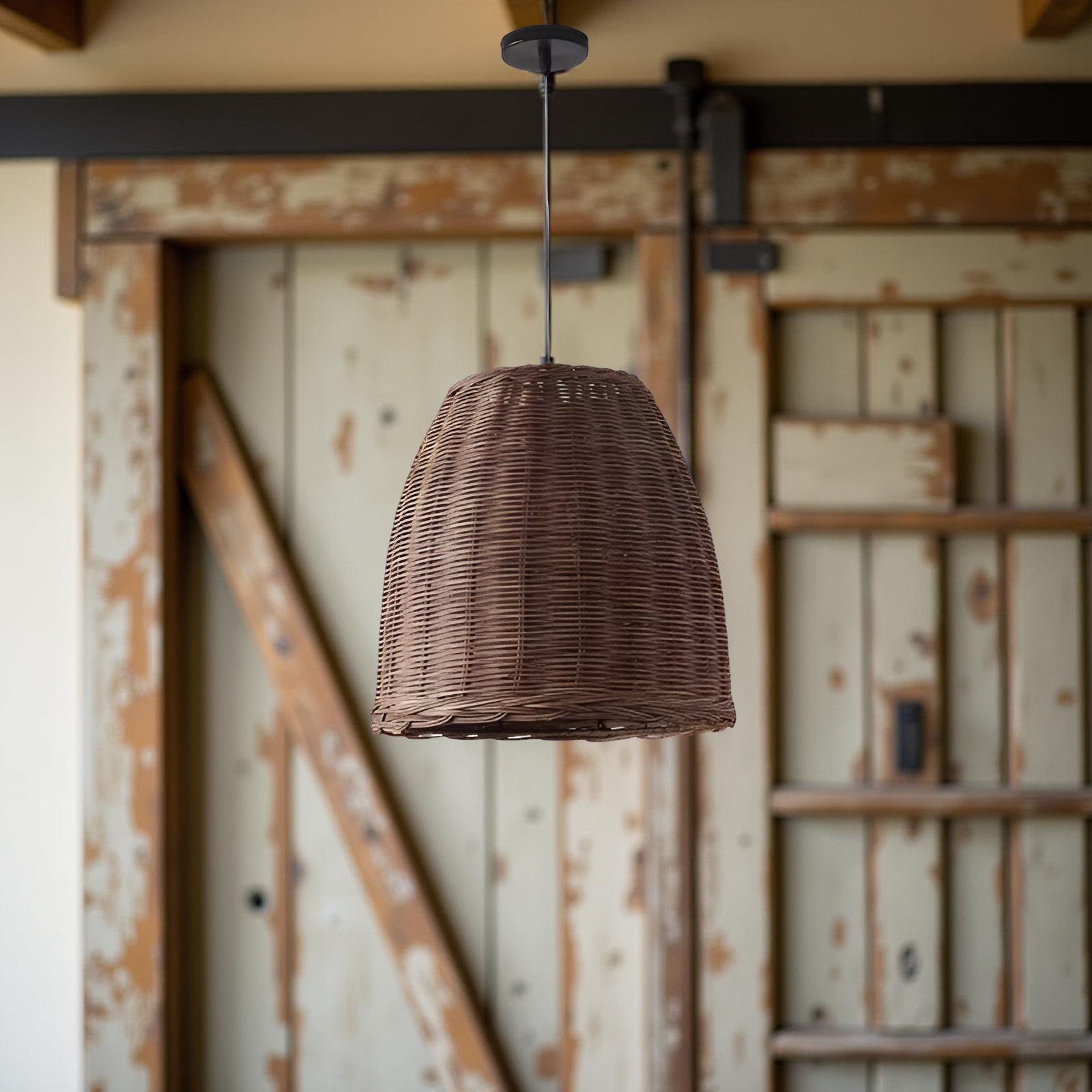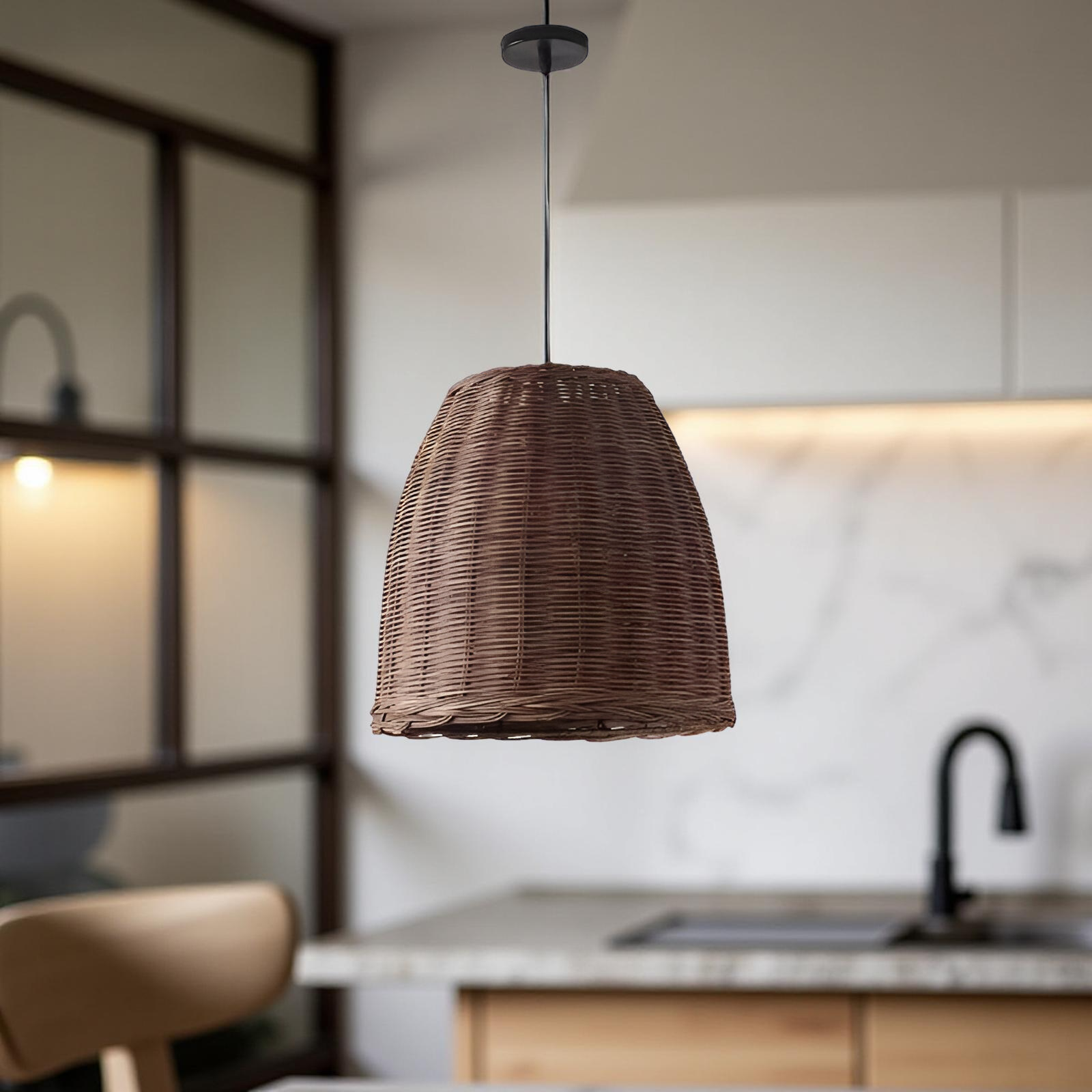 Ge hemmet en varm och naturnära känsla med denna handgjorda pendellampa i äkta rotting. Den flätade strukturen sprider ett mjukt, inbjudande ljus och skapar en rofylld atmosfär som passar perfekt i kök, matsal, vardagsrum eller sovrum. En tidlös design som förenar hantverk, hållbarhet och naturlig elegans.