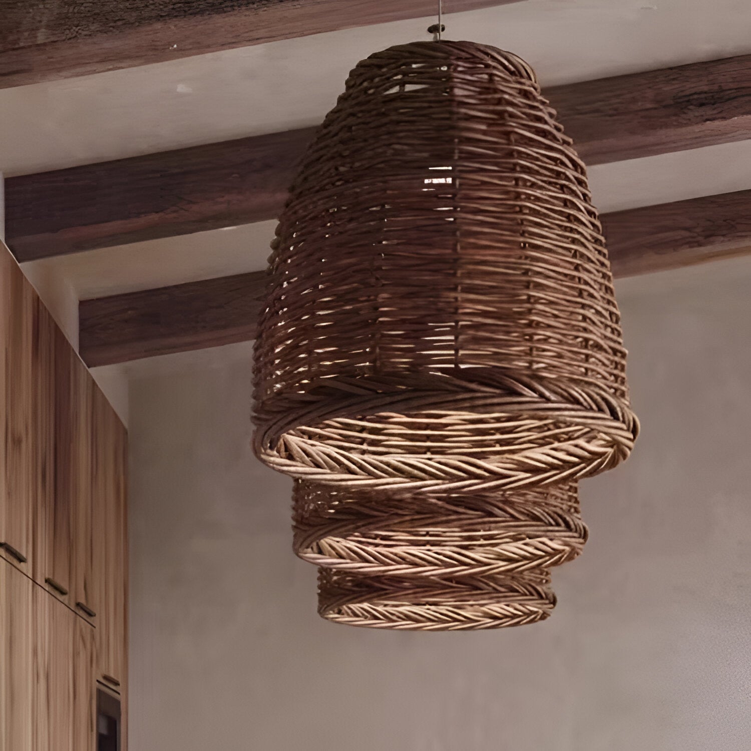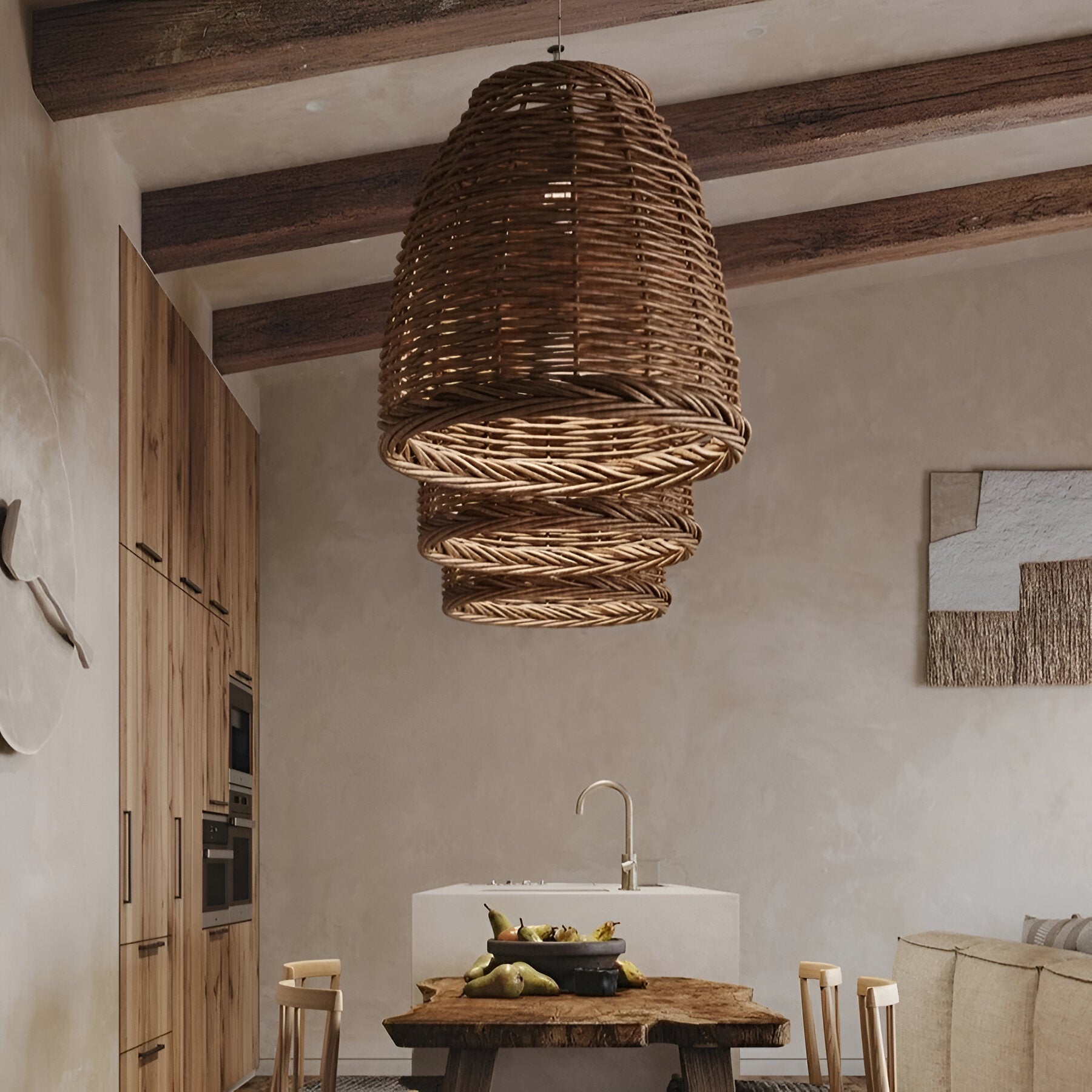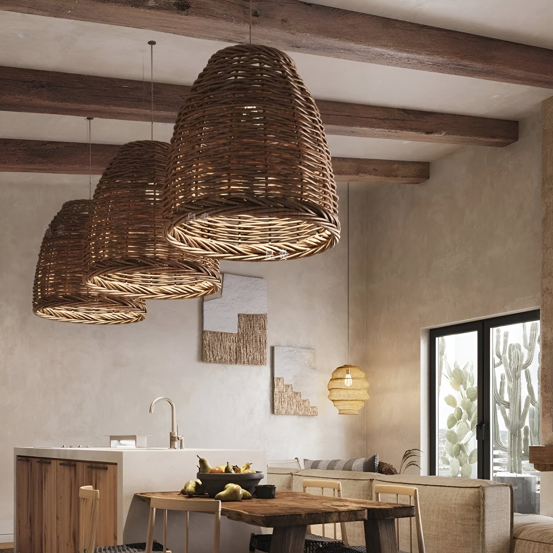 Handgjord pendellampa i äkta rotting för kök matsal vardagsrum och sovrum