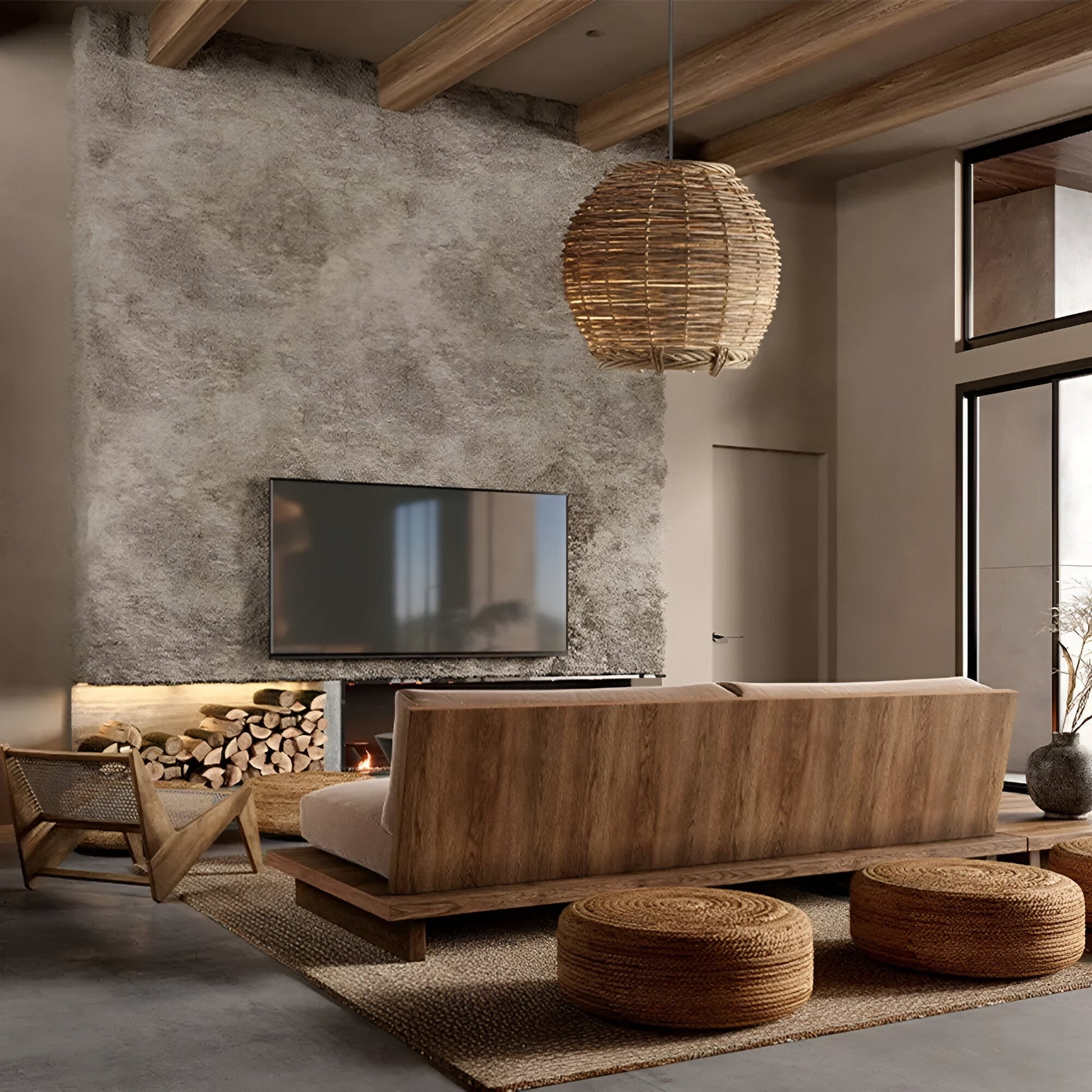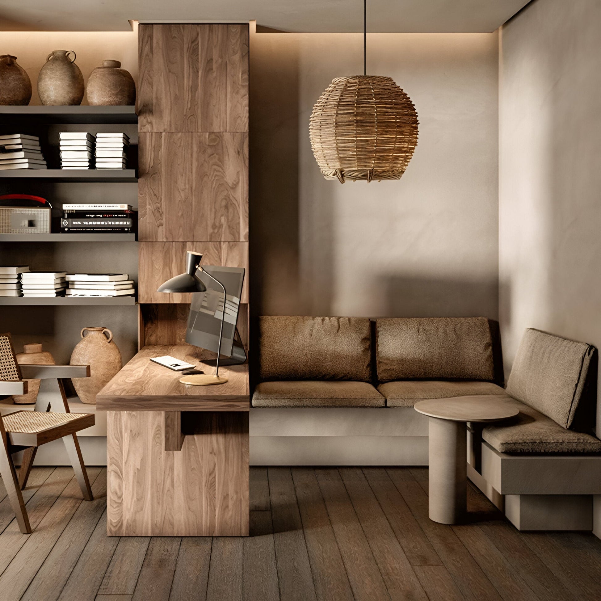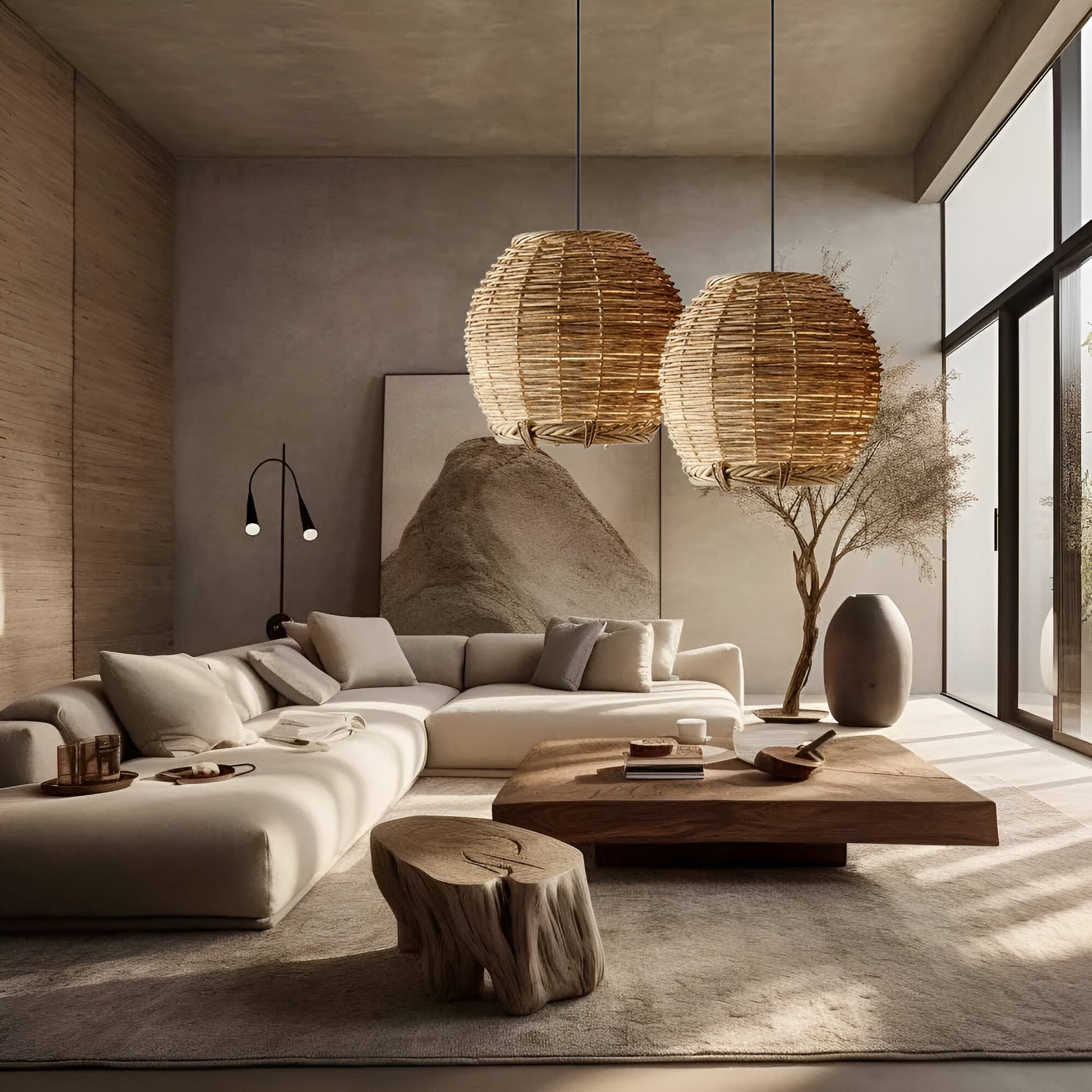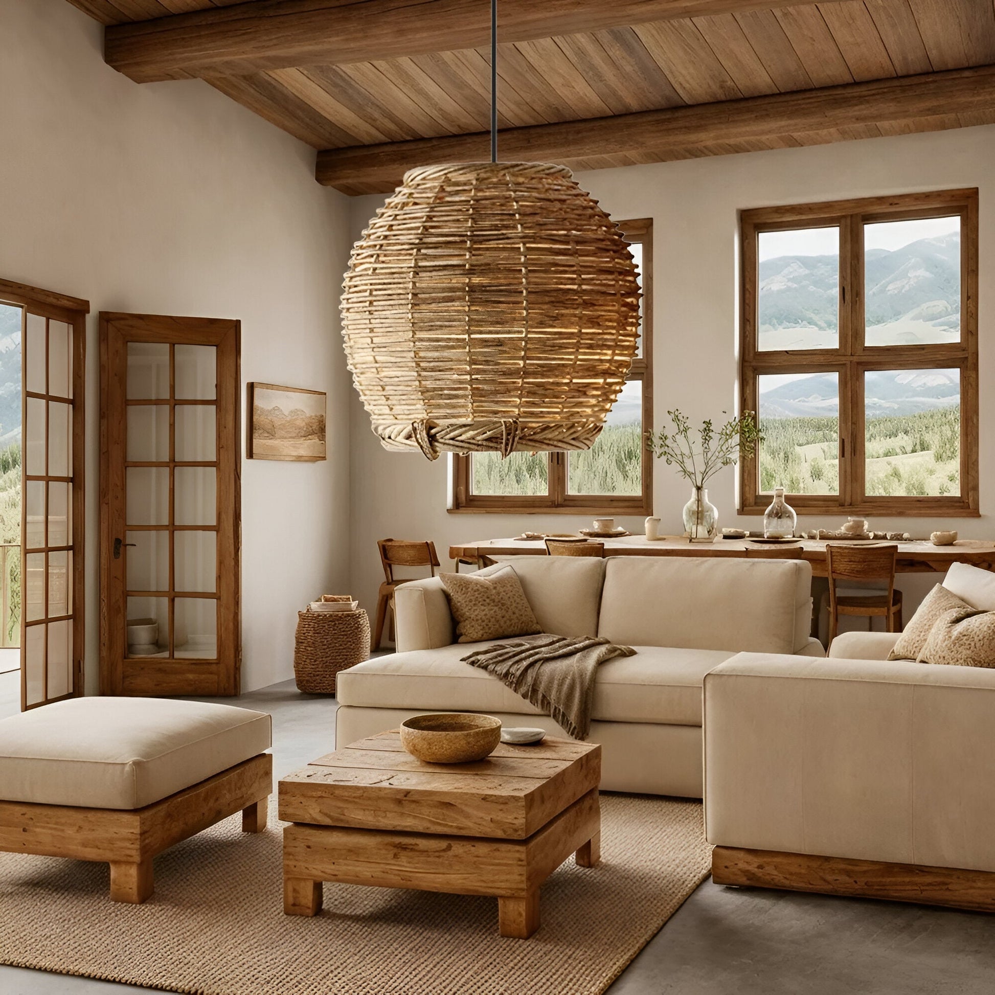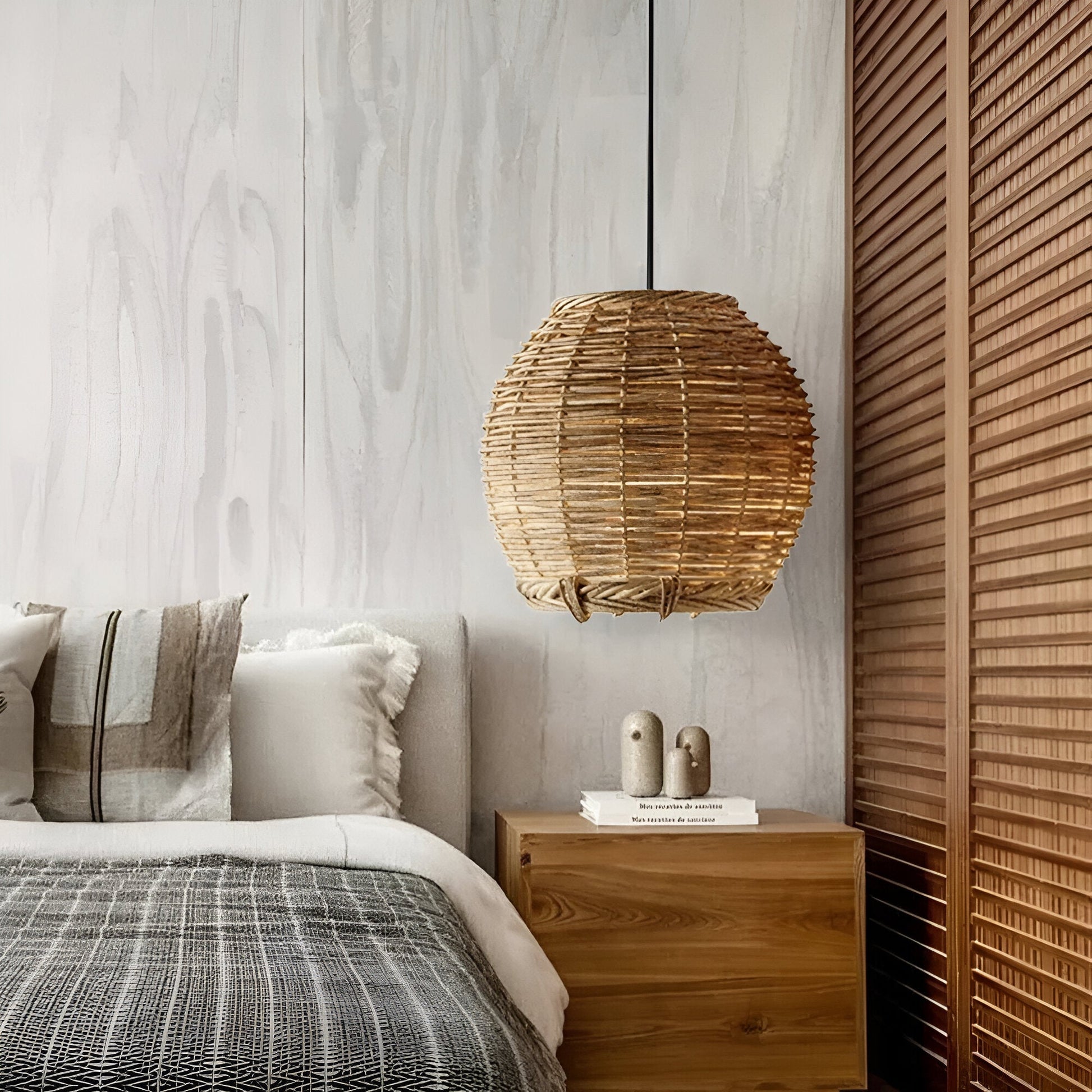 Skapa en varm och harmonisk känsla i ditt hem med denna minimalistiska taklampa i wabi-sabi-stil. Den handgjorda rottingskärmen sprider ett mjukt och behagligt ljus, perfekt över matbordet, i köket, vardagsrummet eller i ett mysigt café- eller restauranghörn. Lampans höjd kan enkelt justeras upp till 1,5 m för att passa olika takhöjder.