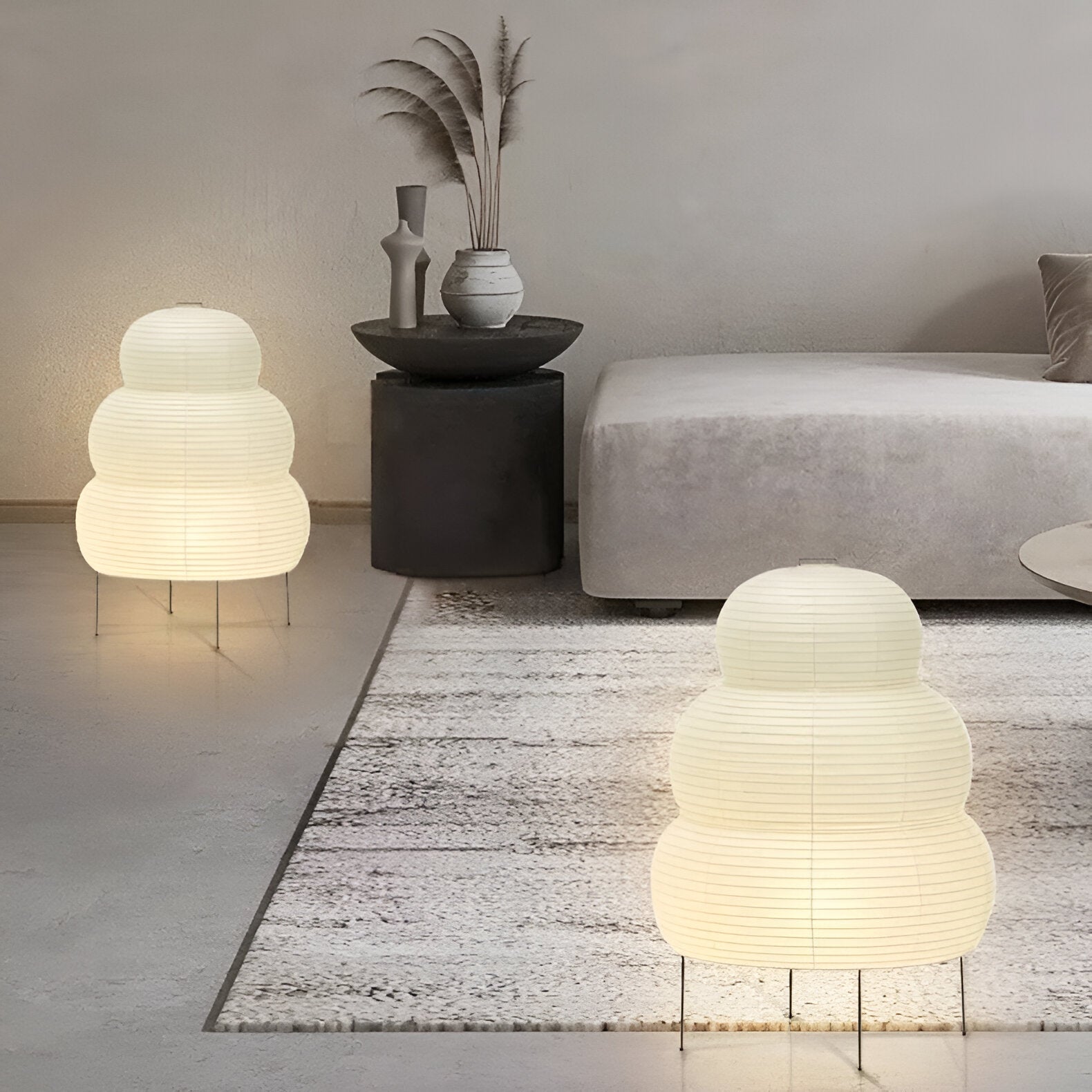 En elegant golvlampa i japanskt inspirerad design med stomme i järn och handgjort rispapper. Lampan sprider ett mjukt och stämningsfullt ljus som skapar en varm atmosfär i rummet. Den kreativa formen gör lampan till ett dekorativt inslag som passar perfekt i vardagsrum, sovrum eller homestay-miljöer.