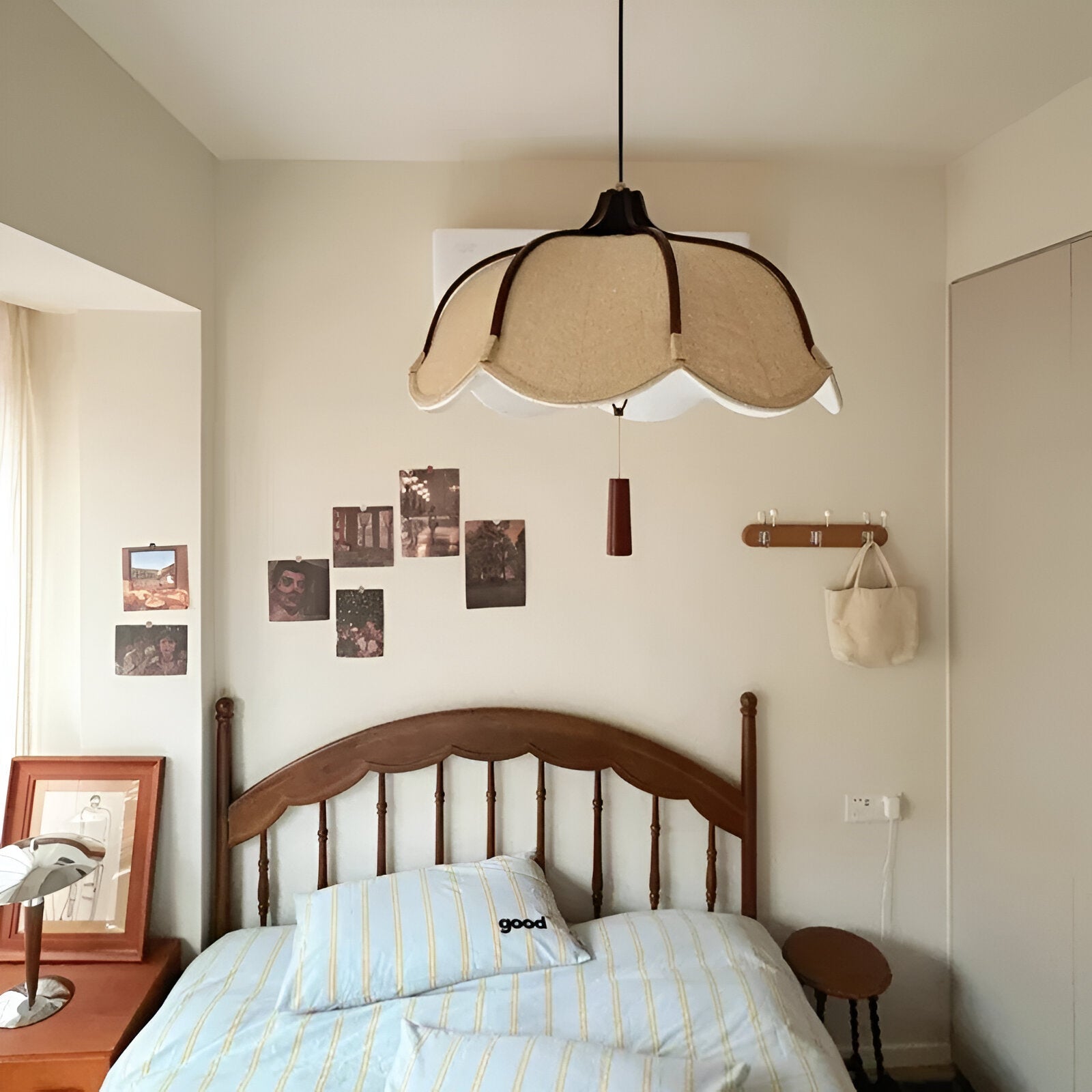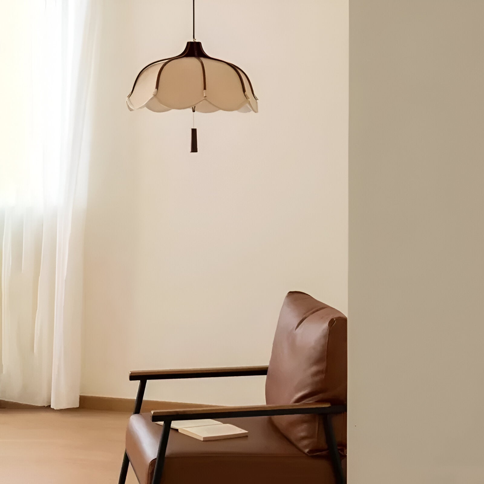 Japansk wabi-sabi taklampa i tyg och metall med justerbar höjd för sovrum matsal vardagsrum