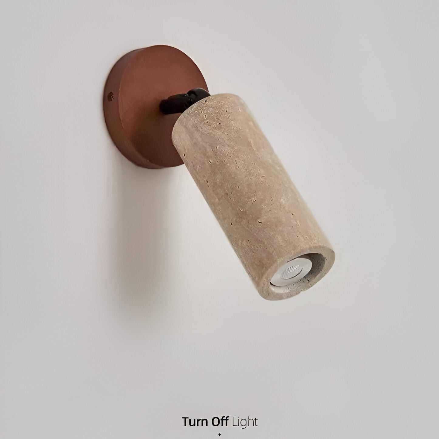 Justerbar Vägglampa i Travertin och Trä – Retro LED Lampa med Naturlig Design för Vägg eller Tak