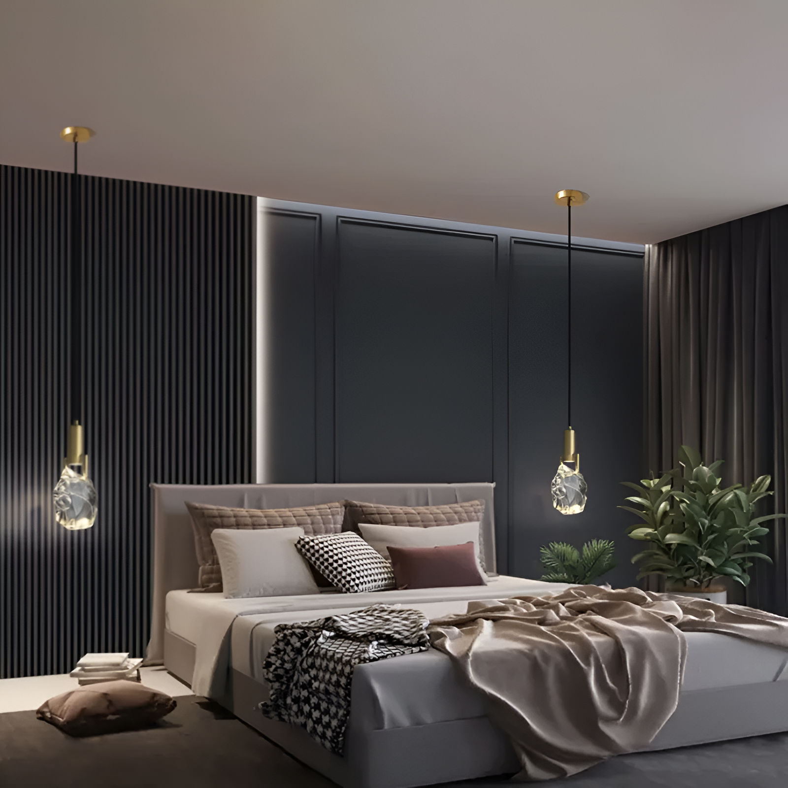 Lyxig nordisk kristall taklampa i koppar med justerbar höjd för sovrum matsal vardagsrum