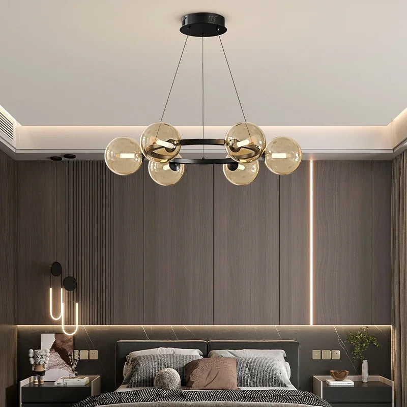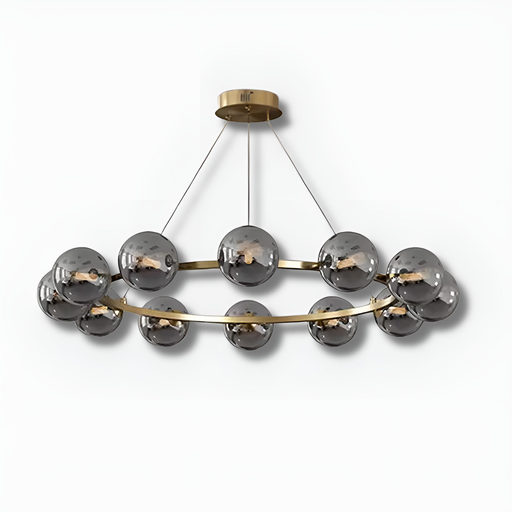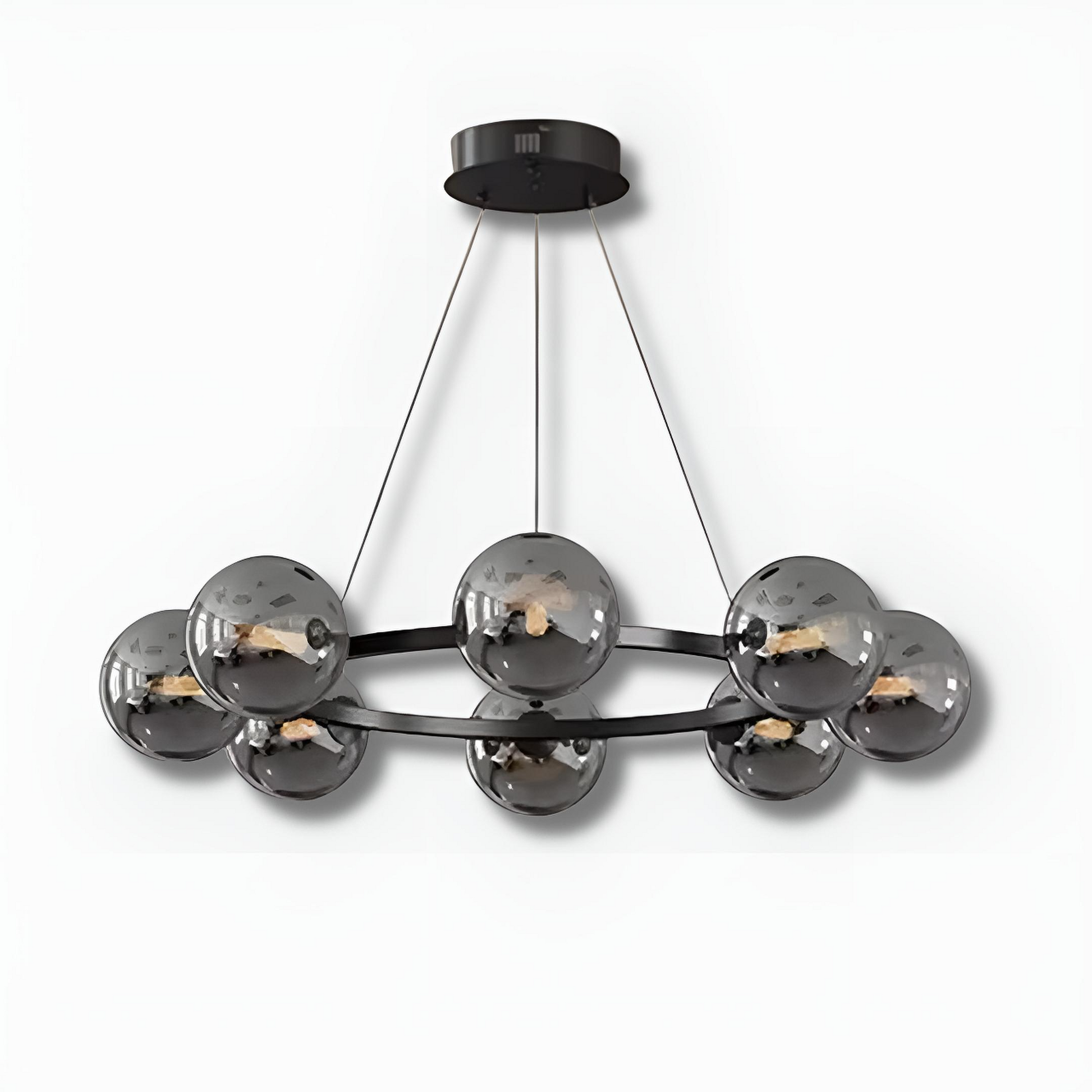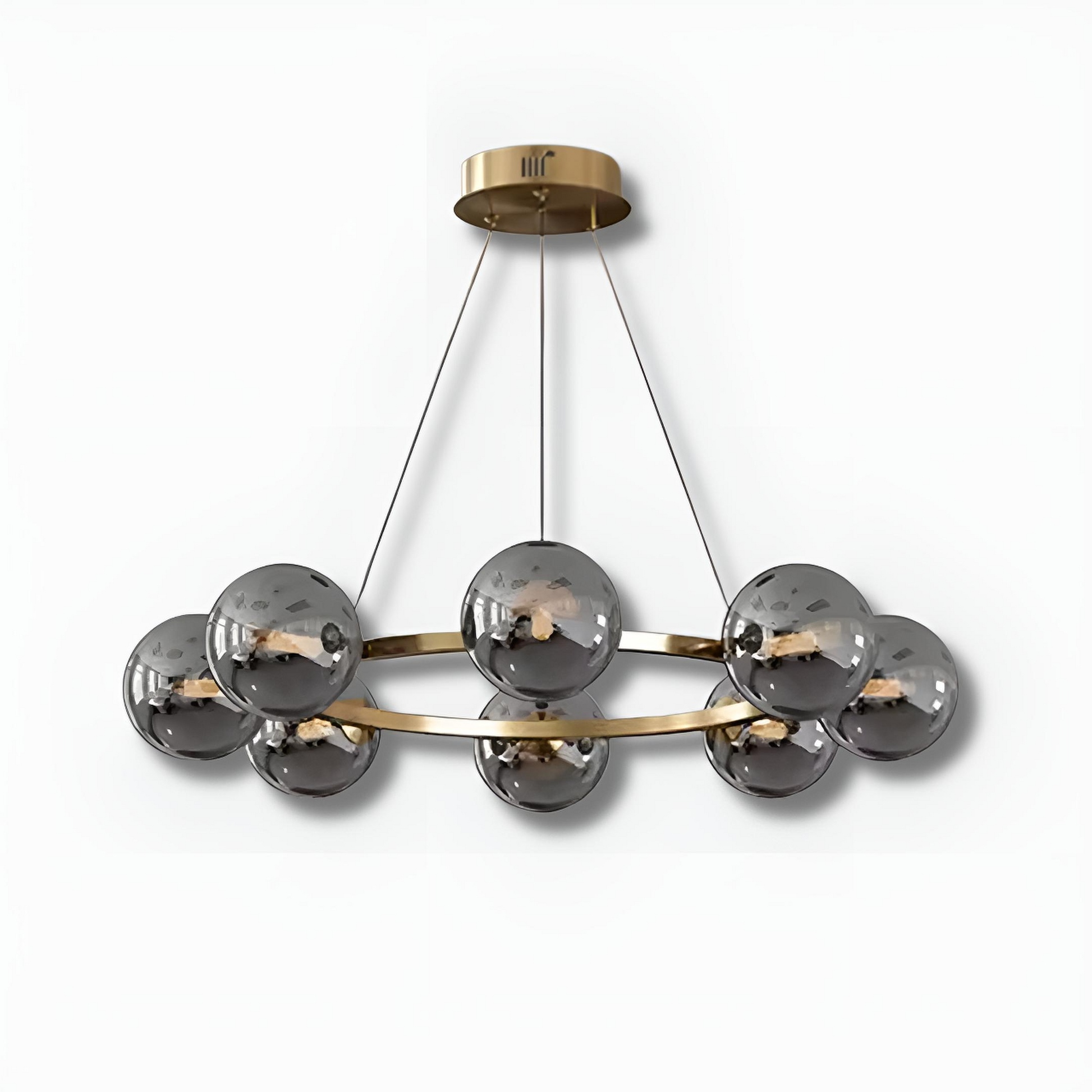 Ge ditt hem en exklusiv känsla med denna lyxiga ringformade taklampa med glasbubblor. Den eleganta designen med runda glaskupor sprider ett mjukt och varmt ljus som gör sig perfekt i vardagsrum, matsal eller hotellmiljö.