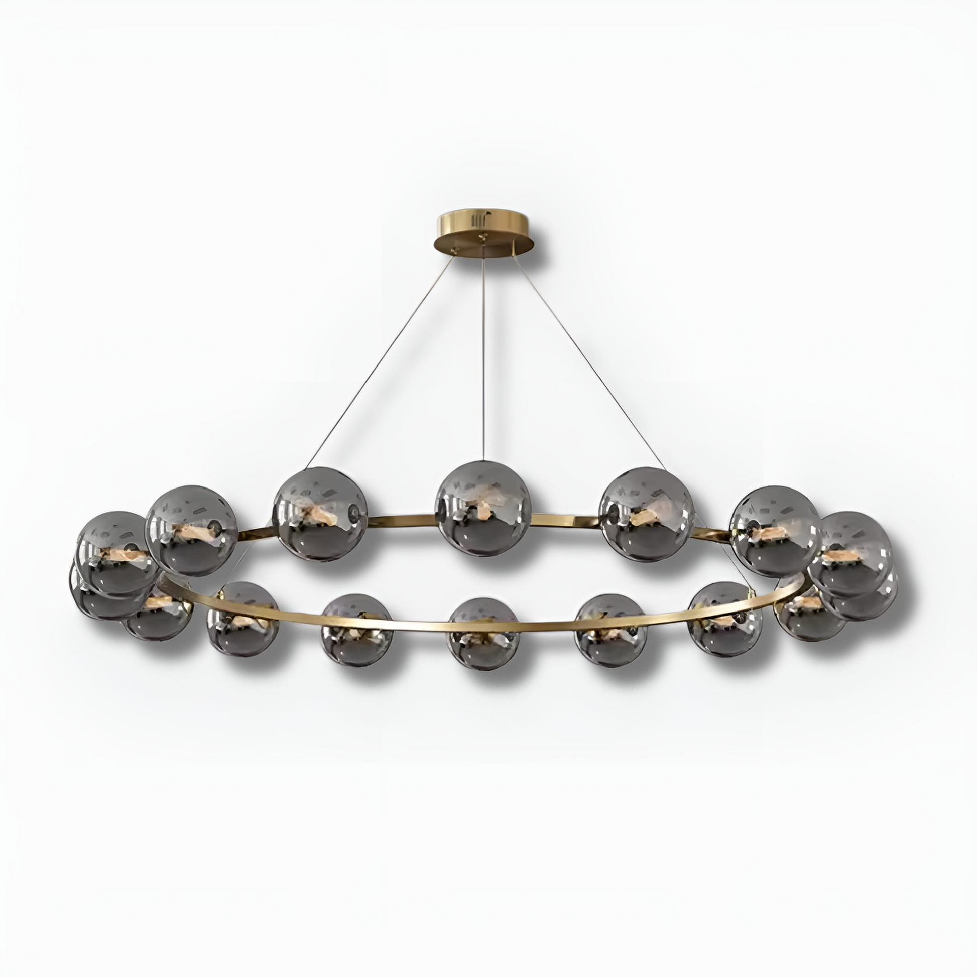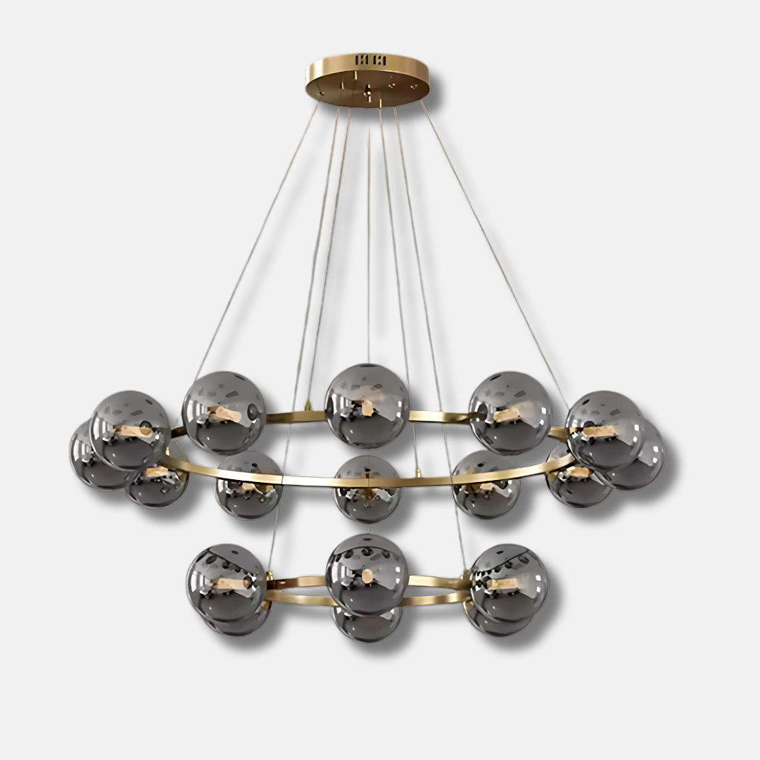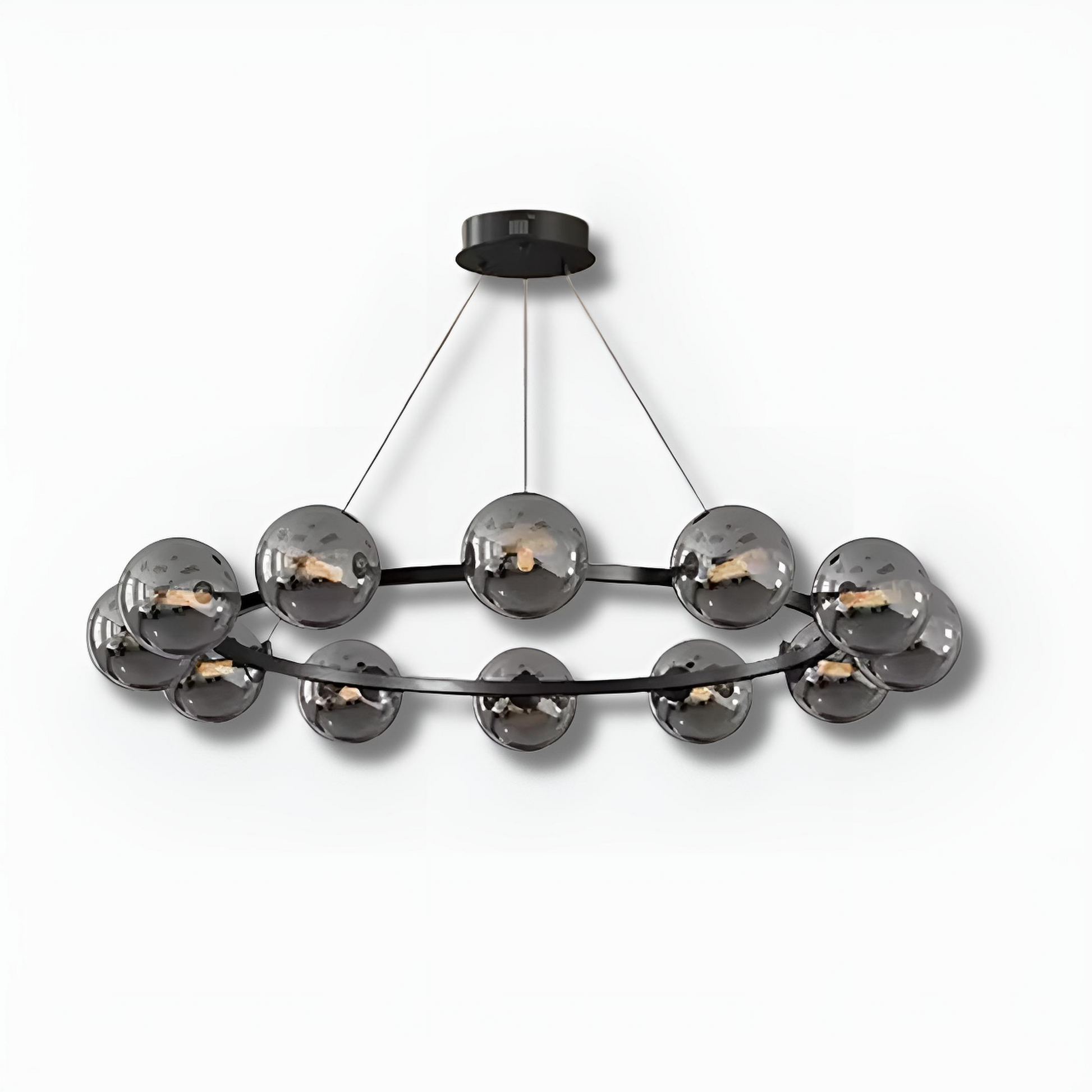Ge ditt hem en exklusiv känsla med denna lyxiga ringformade taklampa med glasbubblor. Den eleganta designen med runda glaskupor sprider ett mjukt och varmt ljus som gör sig perfekt i vardagsrum, matsal eller hotellmiljö.
