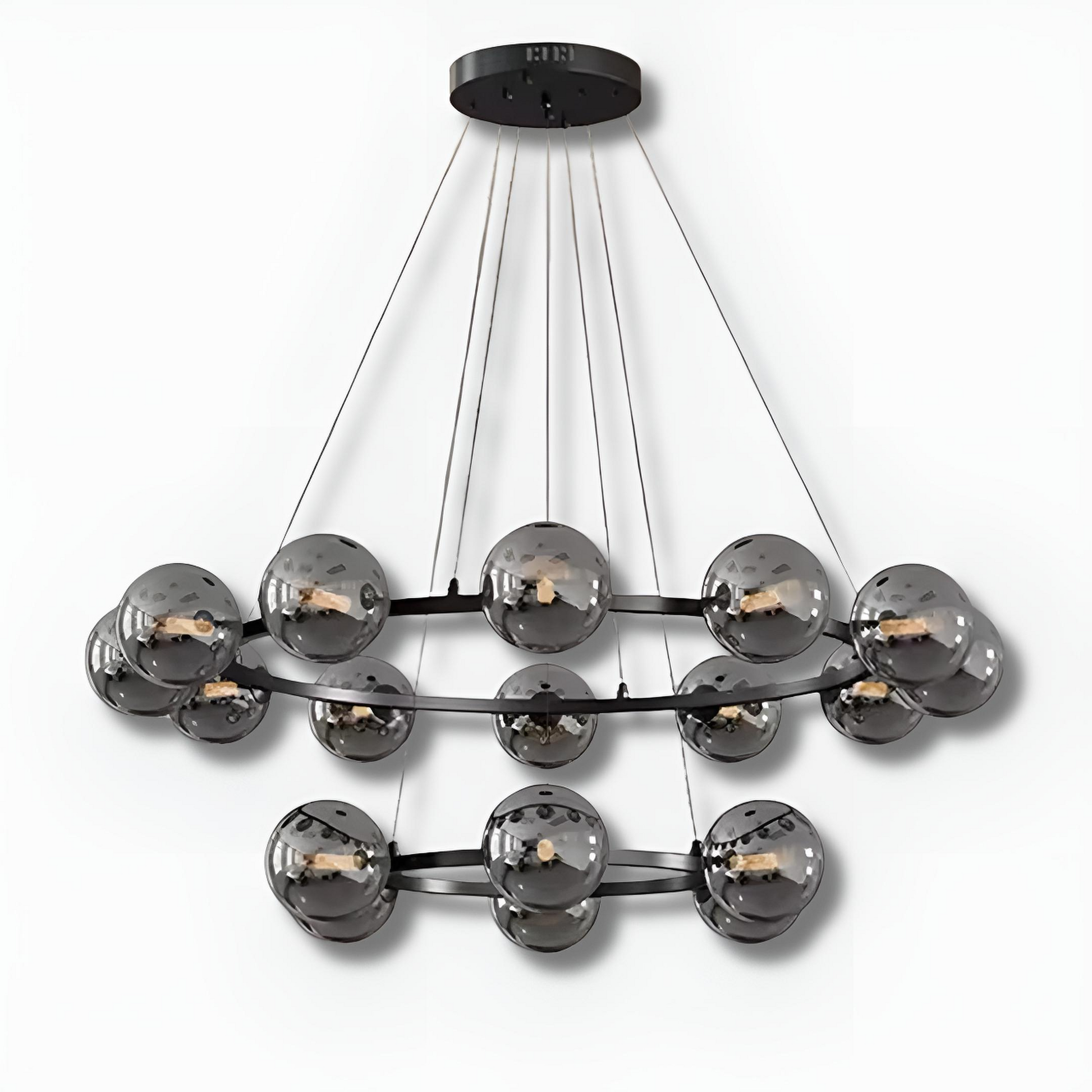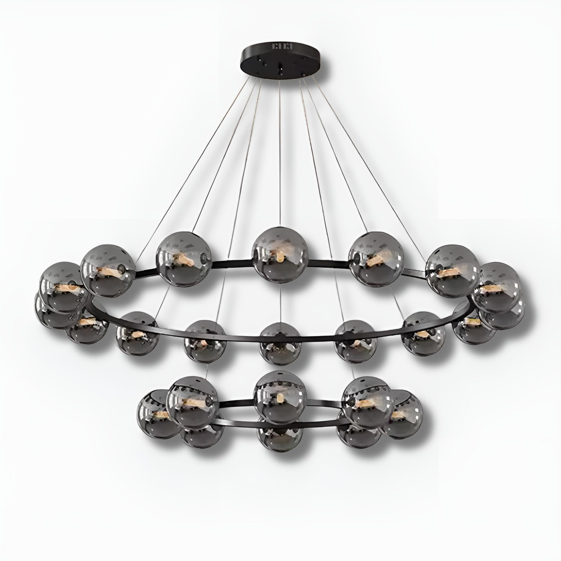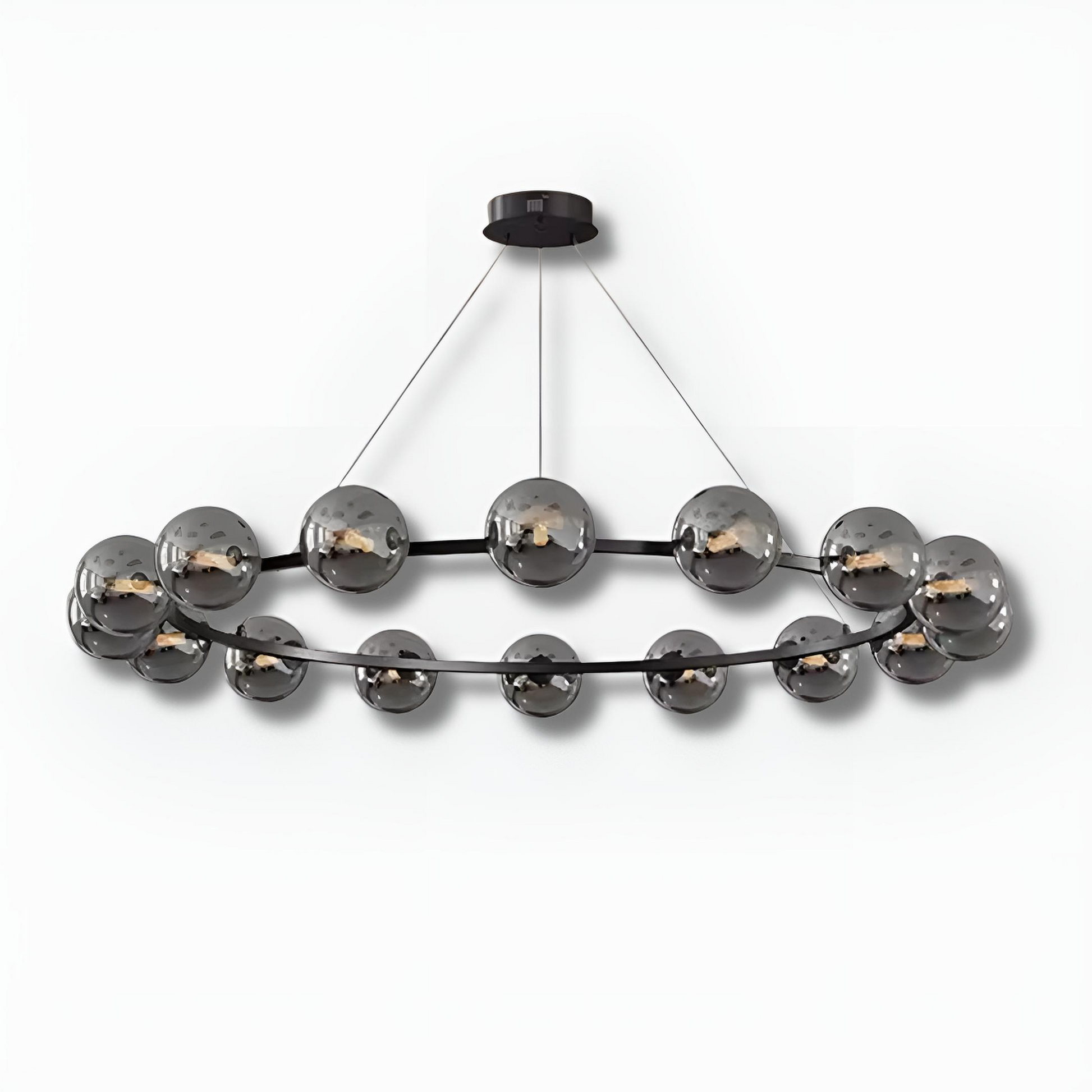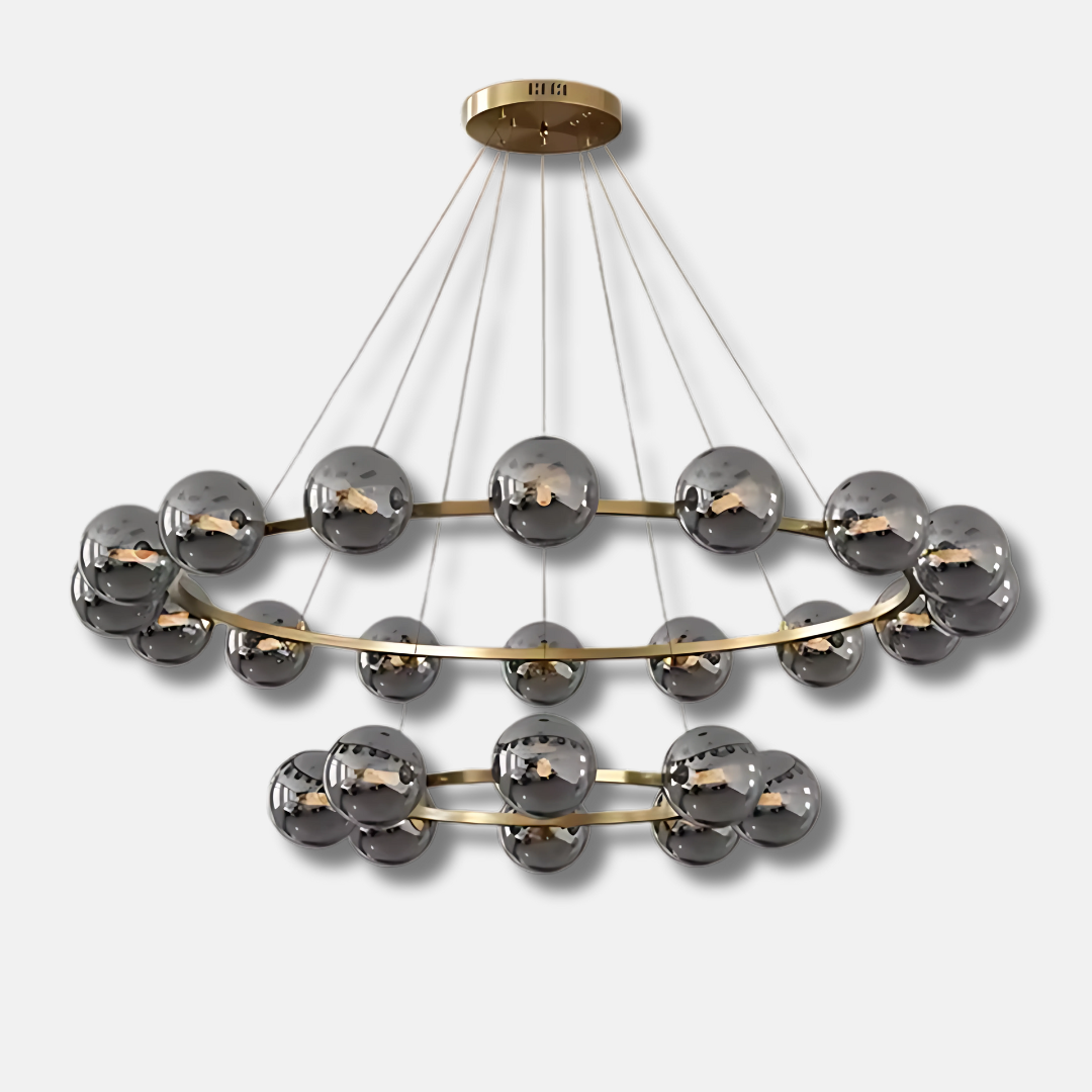Ge ditt hem en exklusiv känsla med denna lyxiga ringformade taklampa med glasbubblor. Den eleganta designen med runda glaskupor sprider ett mjukt och varmt ljus som gör sig perfekt i vardagsrum, matsal eller hotellmiljö.