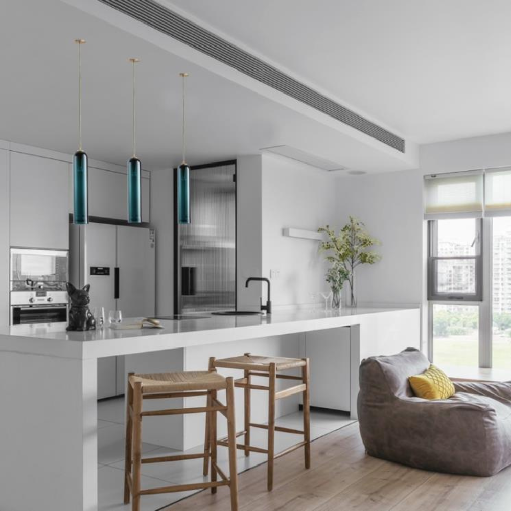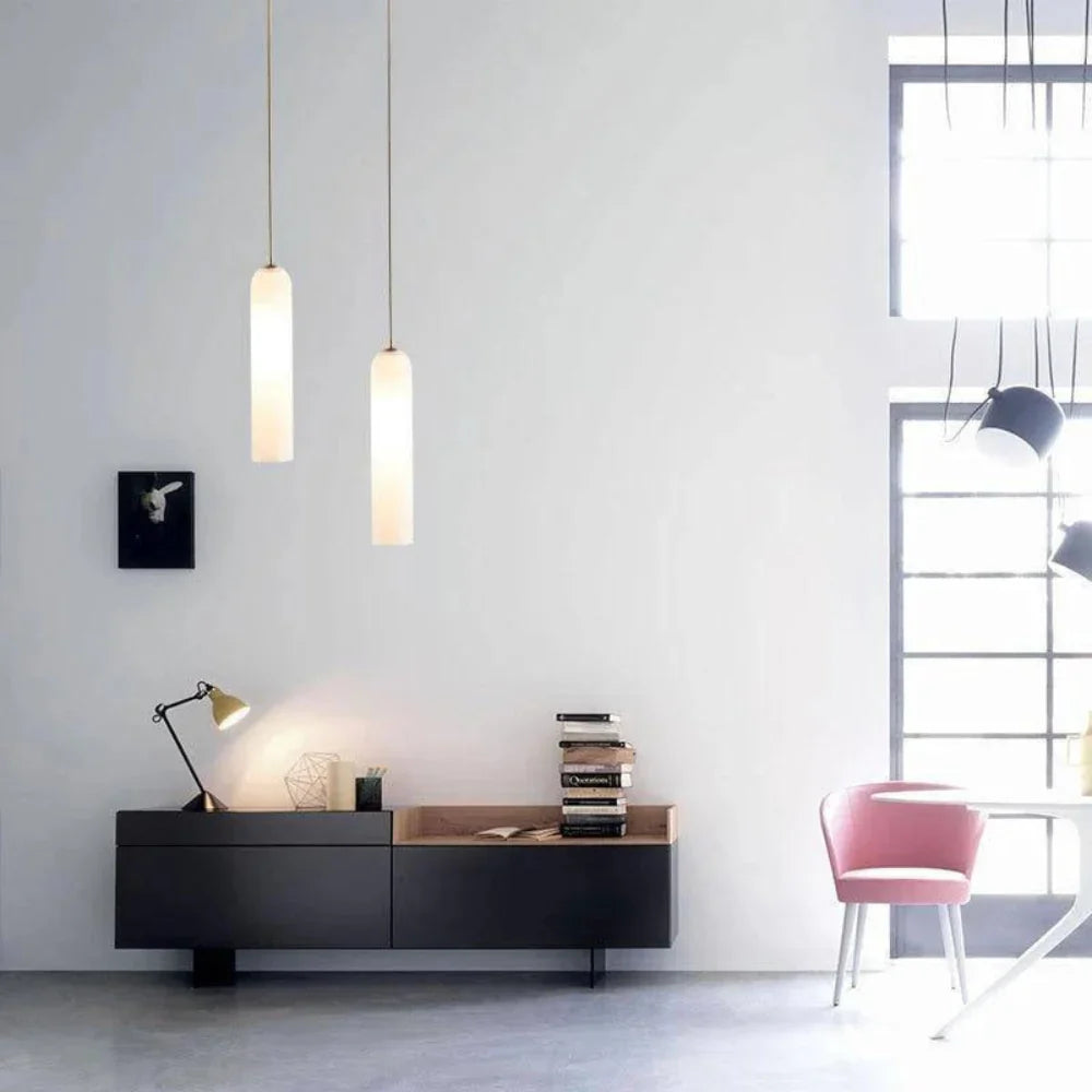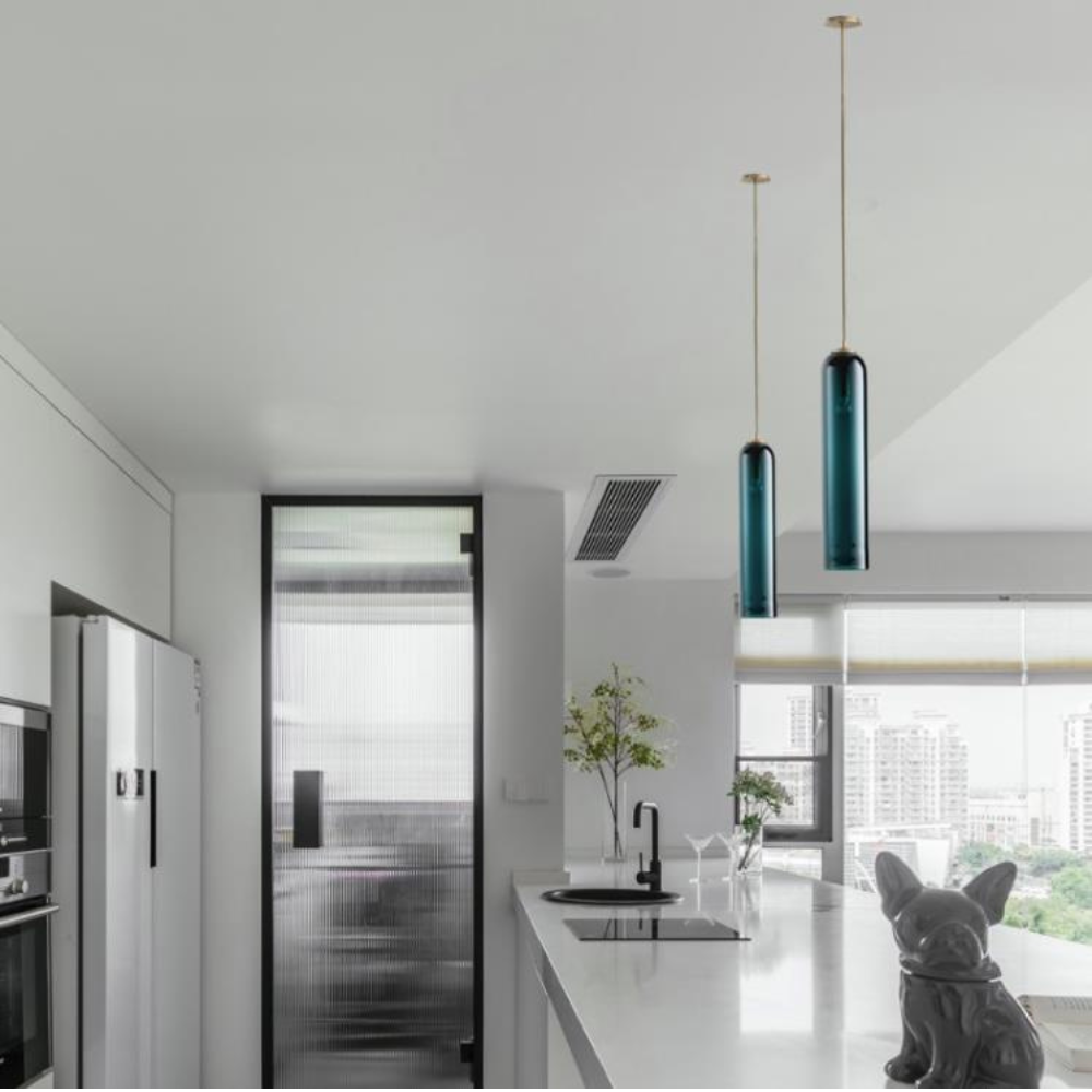 Modern glaspendel med mässingsdetaljer och justerbar höjd