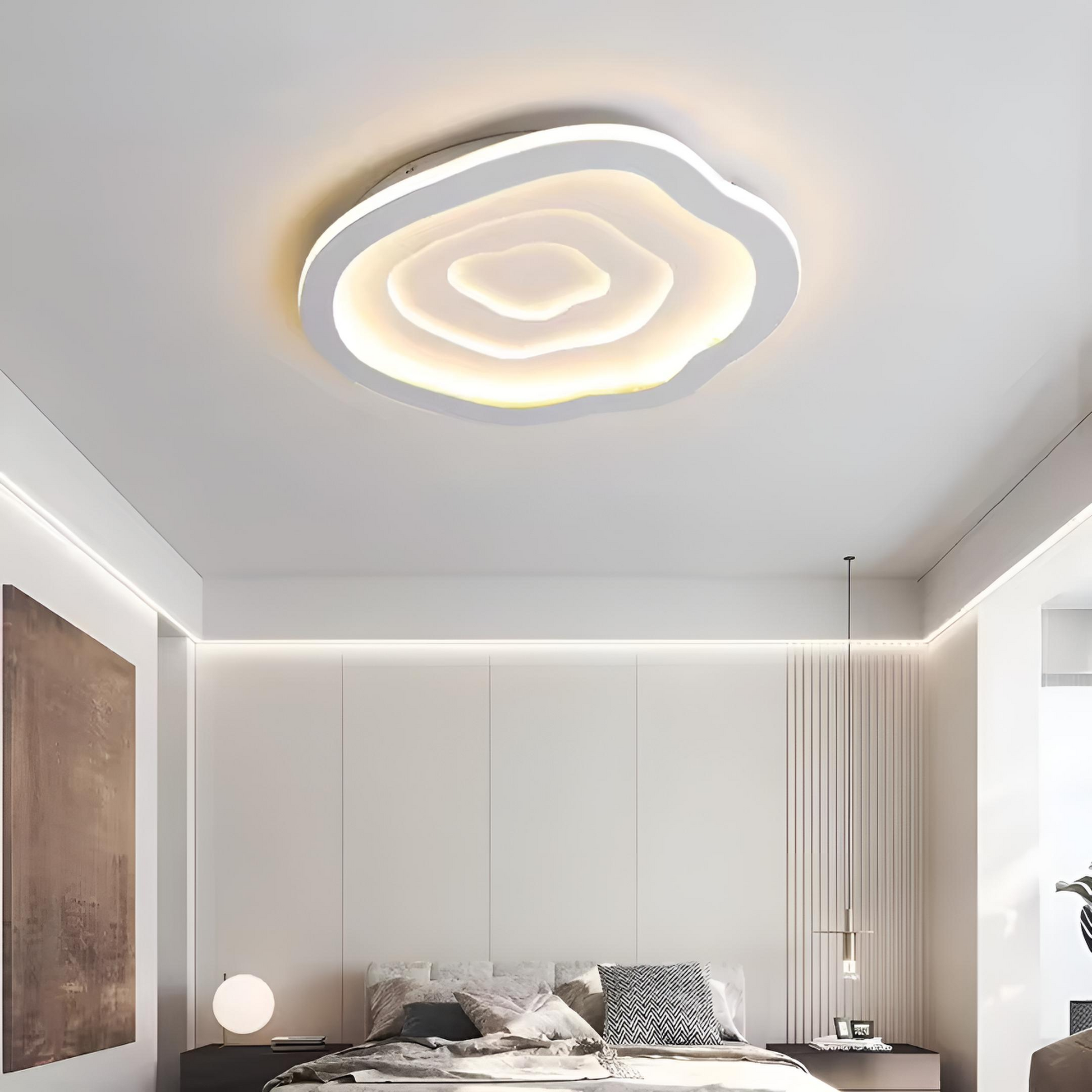 En modern LED taklampa med unik vågformad design som sprider ett jämnt och dekorativt ljus i rummet. Perfekt för vardagsrum, sovrum, matsal, kök eller arbetsrum. Den tidlösa designen gör lampan till ett stilfullt inslag i både moderna och klassiska hem.