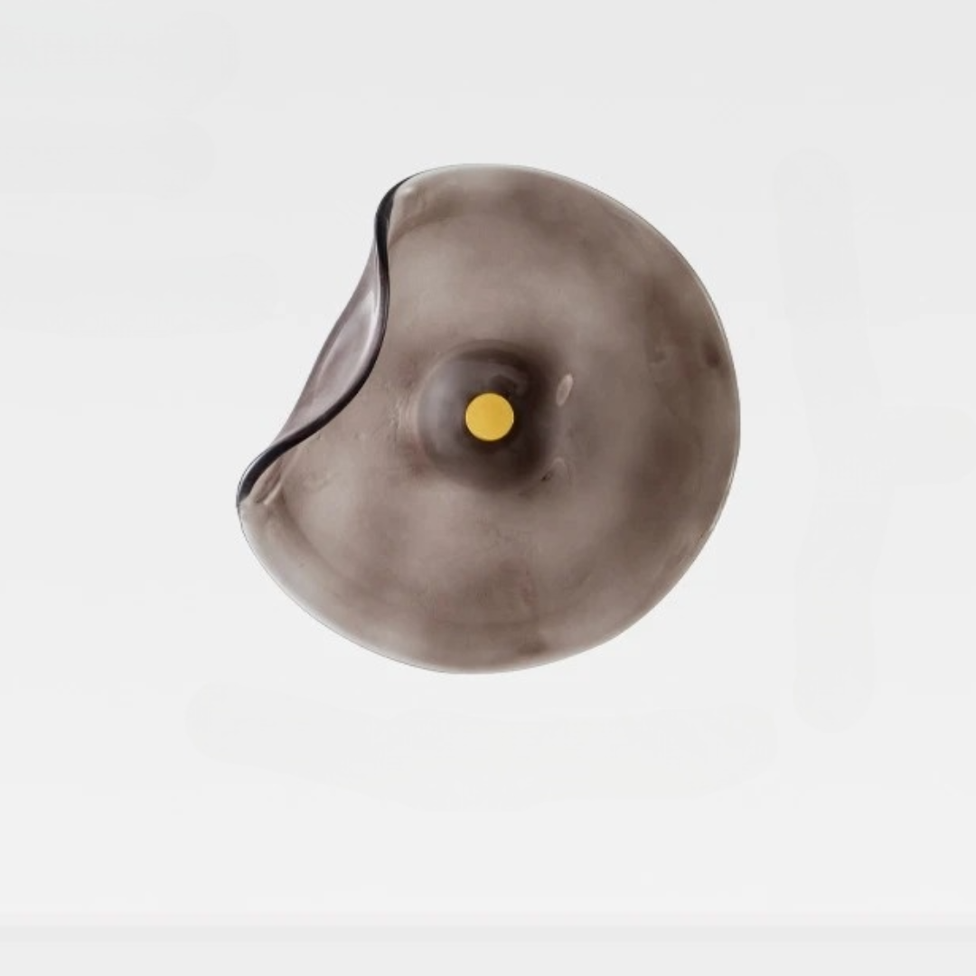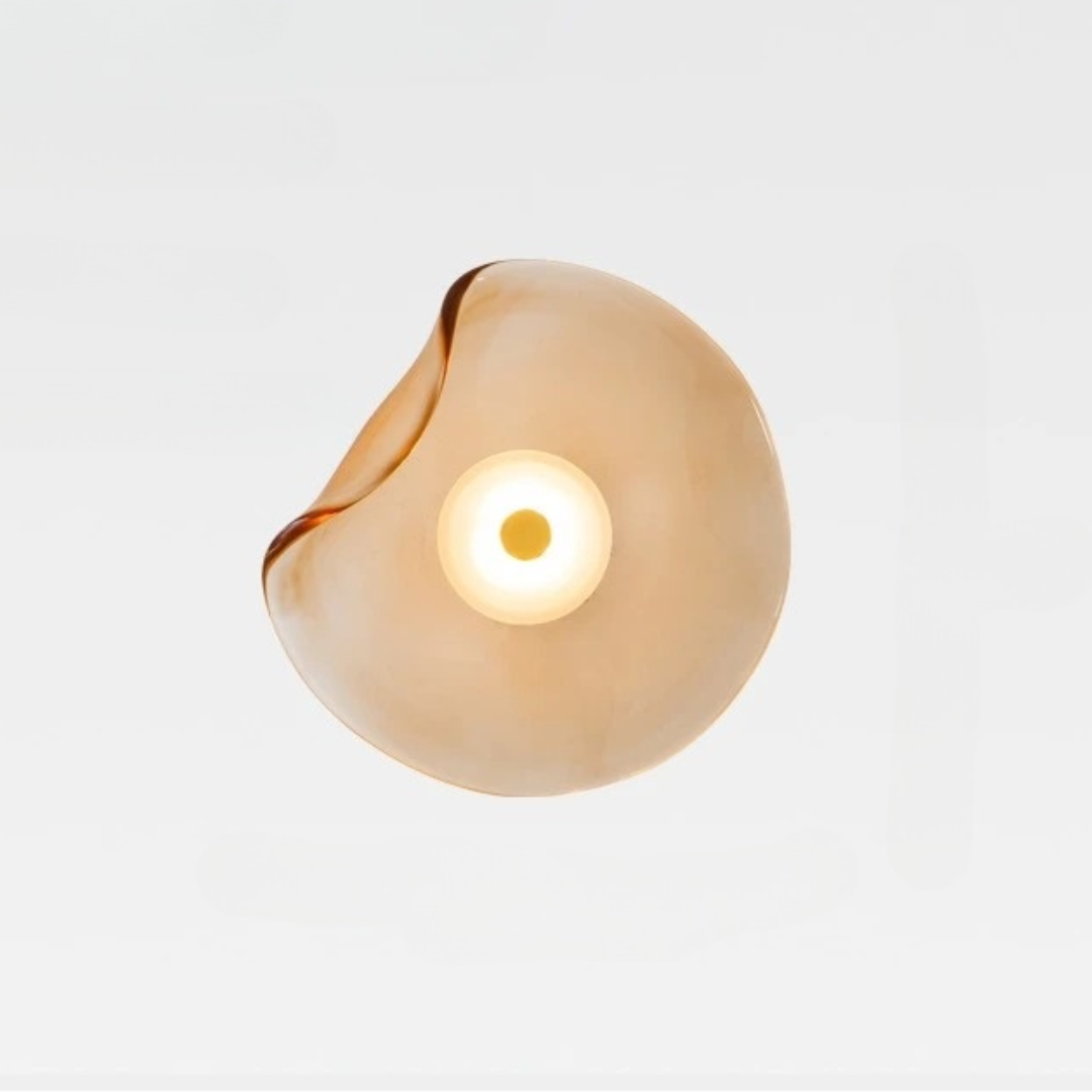 Förhöj ditt hem med en unik vägglampa i konstnärlig design. Den handgjorda, organiska glasformen sprider ett mjukt, varmt ljus som skapar en elegant och avkopplande atmosfär i varje rum. Perfekt för sovrum, vardagsrum, hall eller som dekorativ accent i matsalen. Den moderna men tidlösa stilen gör lampan till ett blickfång både tänd och släckt.