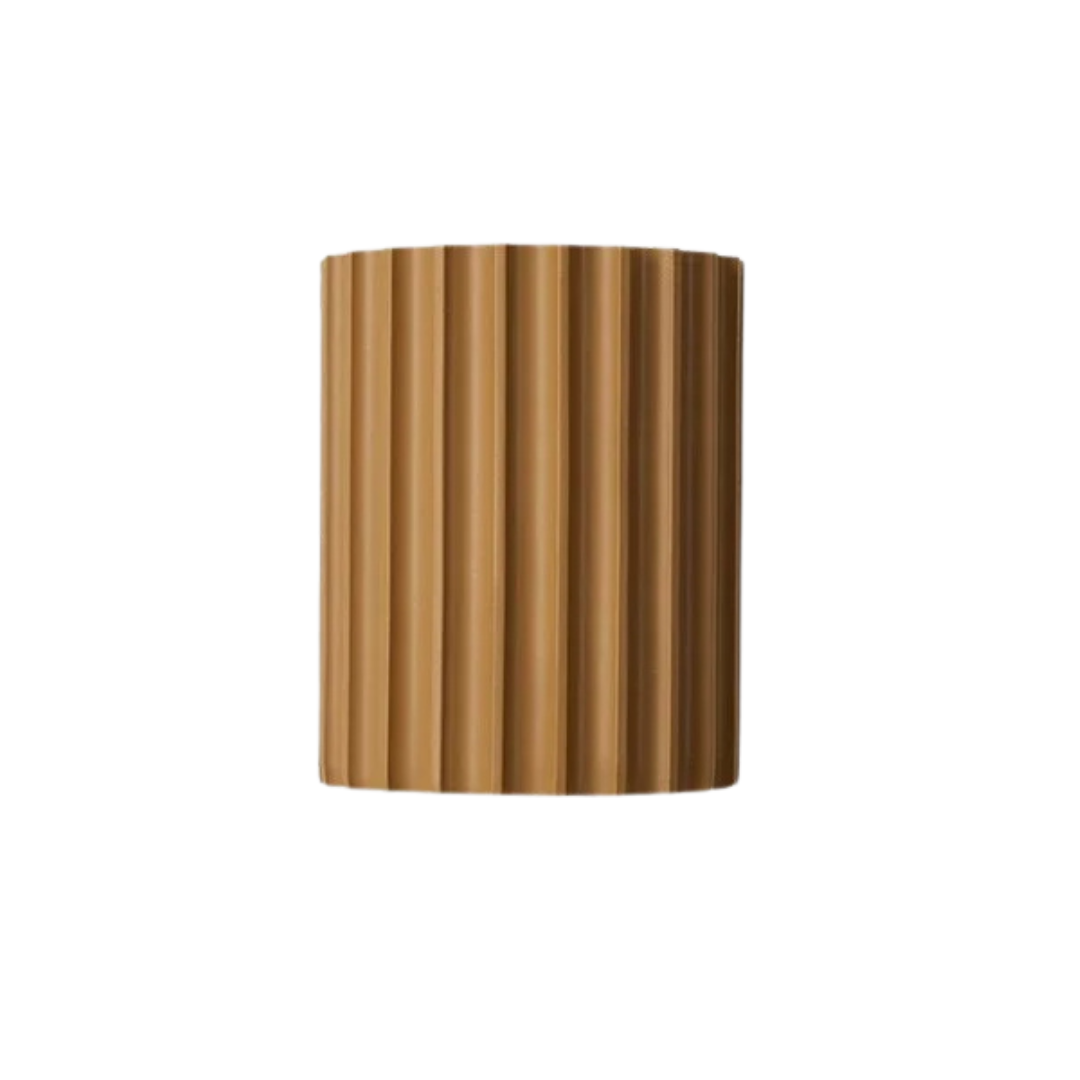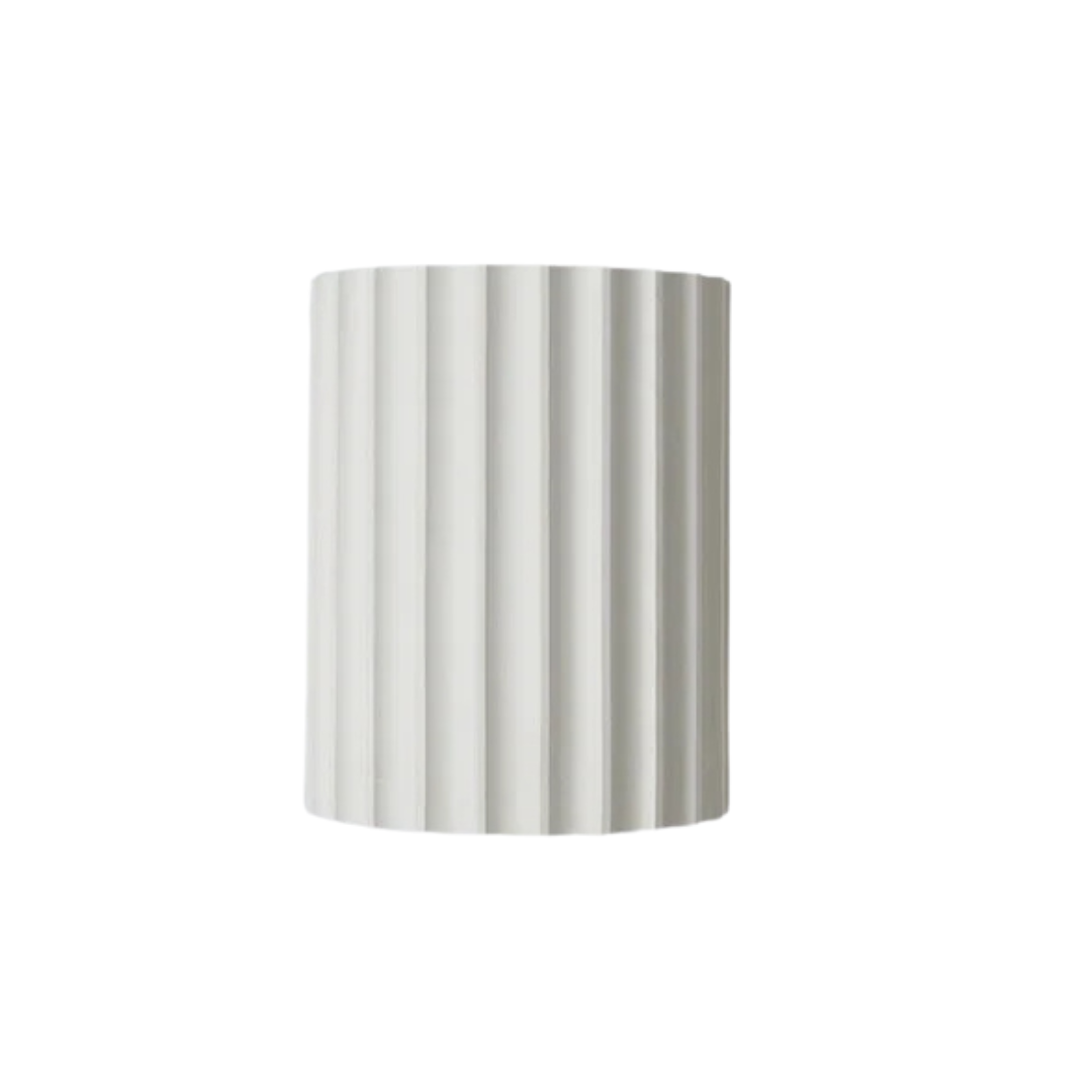 Den skulpterade formen med räfflad yta skapar en dekorativ känsla och passar perfekt i sovrum, vardagsrum, hall eller som accentbelysning längs en vägg. Ljuset sprids uppåt och nedåt för en harmonisk atmosfär och gör lampan både praktisk och estetisk.
