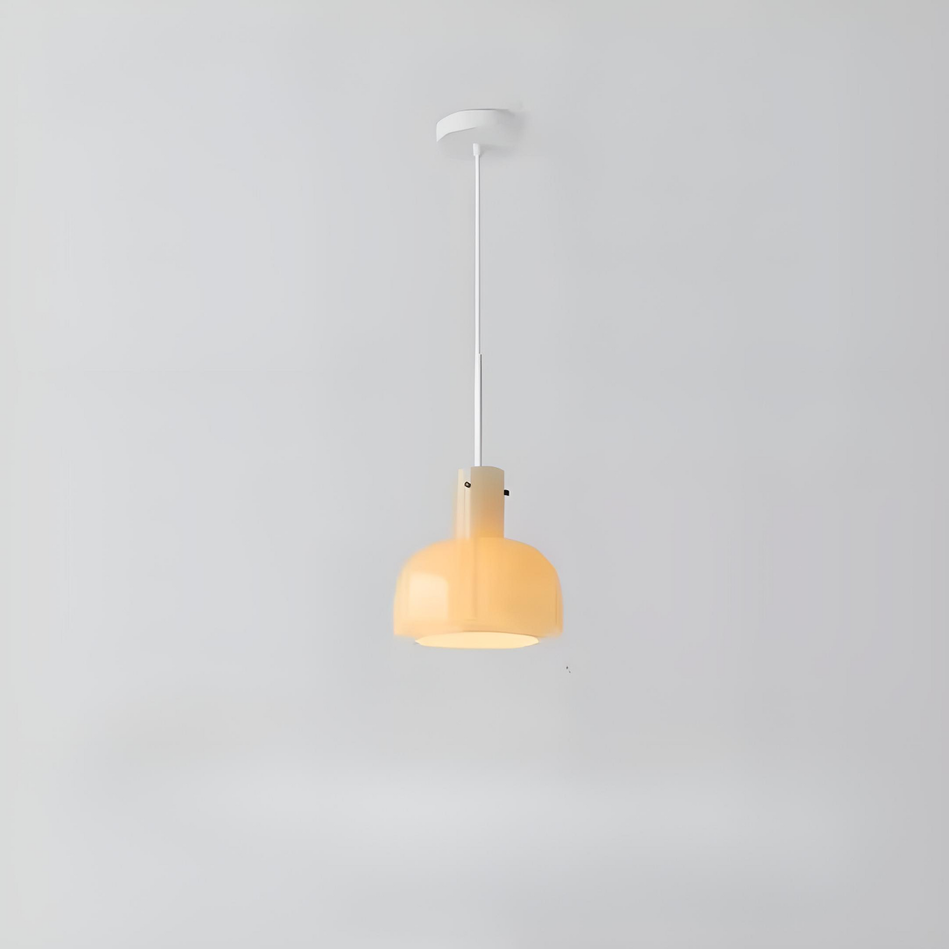 Denna nordiska pendellampa i färgat glas kombinerar modern design med klassisk elegans. Den kupolformade lampskärmen i orange glas sprider ett varmt och behagligt ljus som skapar en inbjudande atmosfär i kök, matsal eller sovrum. Med en justerbar höjd på upp till 120 cm kan lampan enkelt anpassas efter rummet och placeras enskilt eller i grupp för en stilfull belysning.