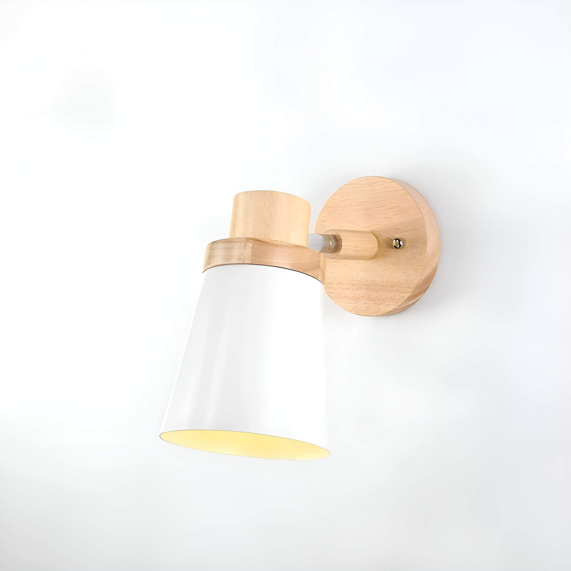 Denna nordiska vägglampa kombinerar naturligt trä med en stilren metallskärm och ger en varm och harmonisk känsla i hemmet.