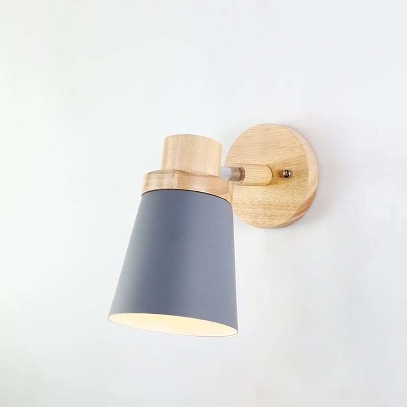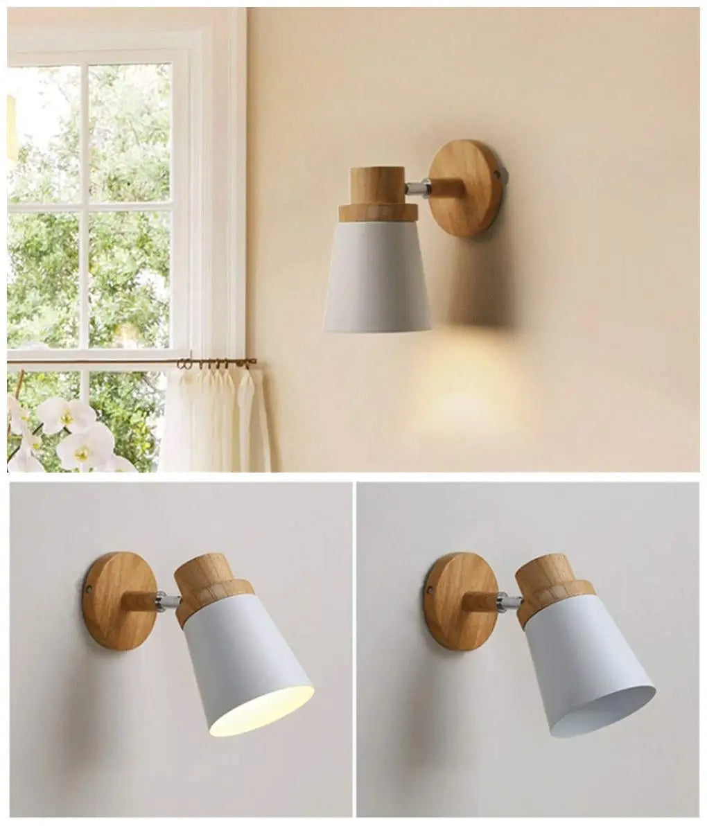 Nordisk vägglampa i trä och metall med E27 för sovrum vardagsrum sängbelysning
