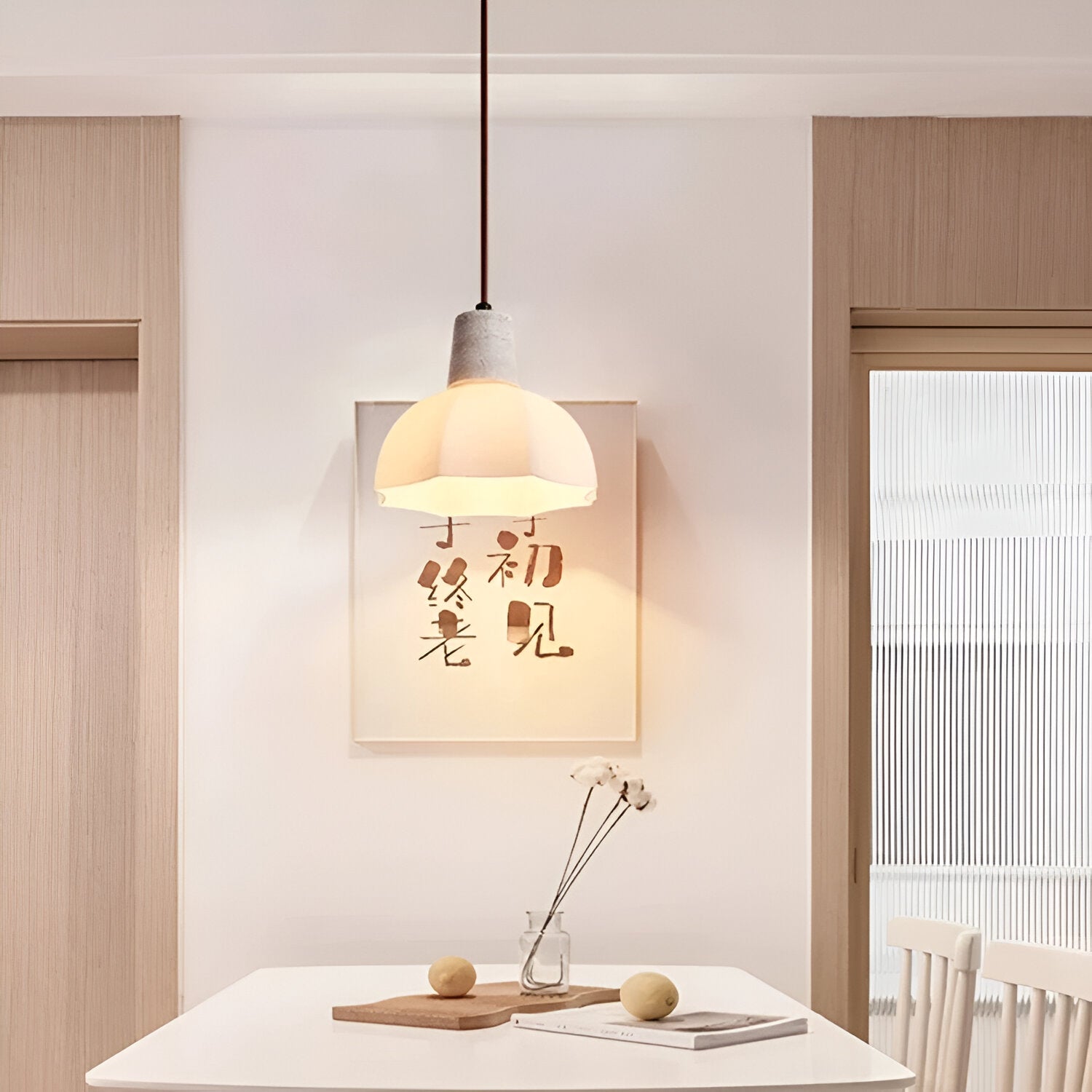 Skapa en mjuk och inbjudande atmosfär med denna romantiska pendellampa i blomformad sten och glas. Den eleganta designen förvandlar sovrum och nattduksbord till en harmonisk plats för avkoppling. Lampan ger ett varmt, behagligt sken och blir en naturlig blickpunkt som förhöjer inredningen i både moderna och klassiska hem.