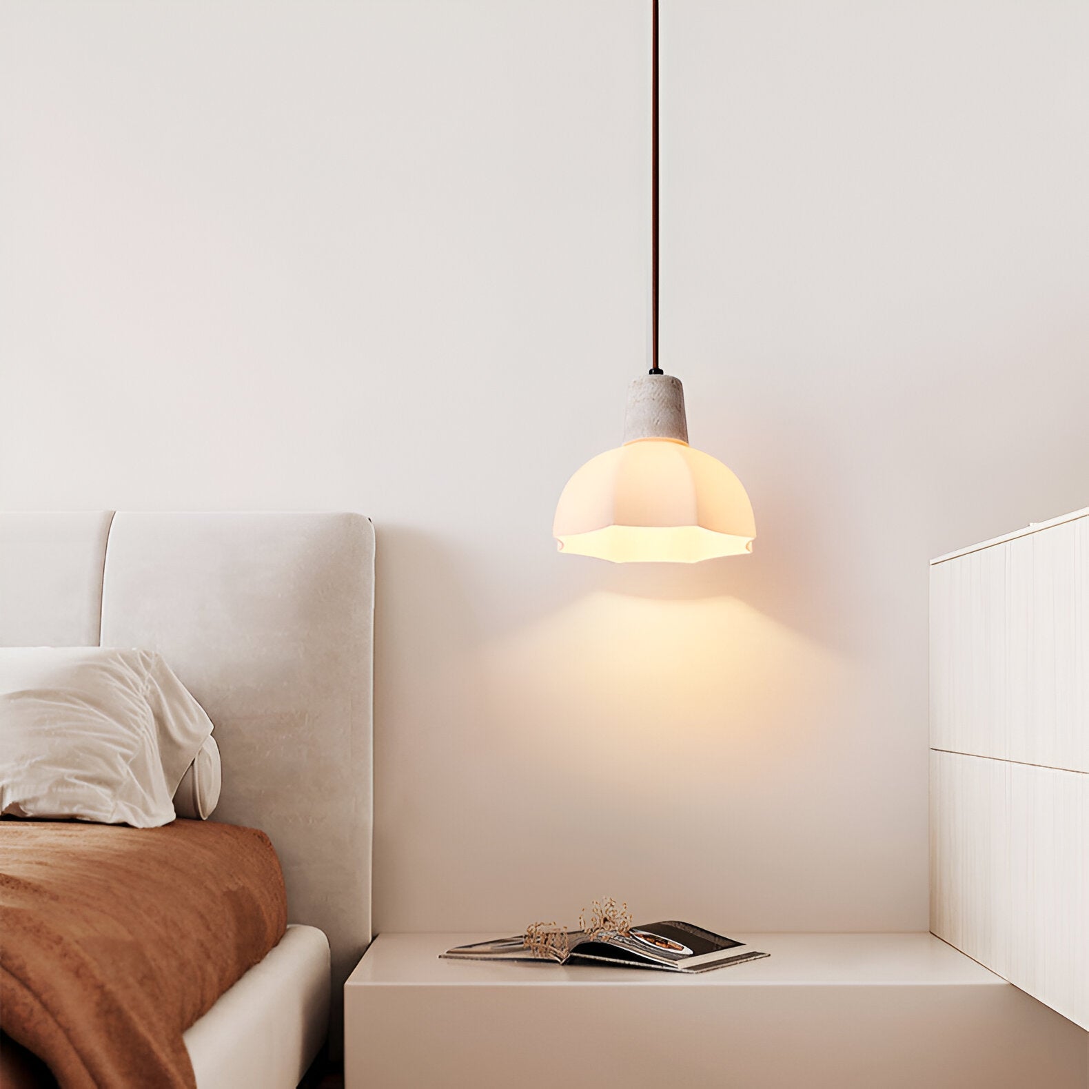 Romantisk pendellampa i blomformad sten och glas för sovrum och nattduksbord