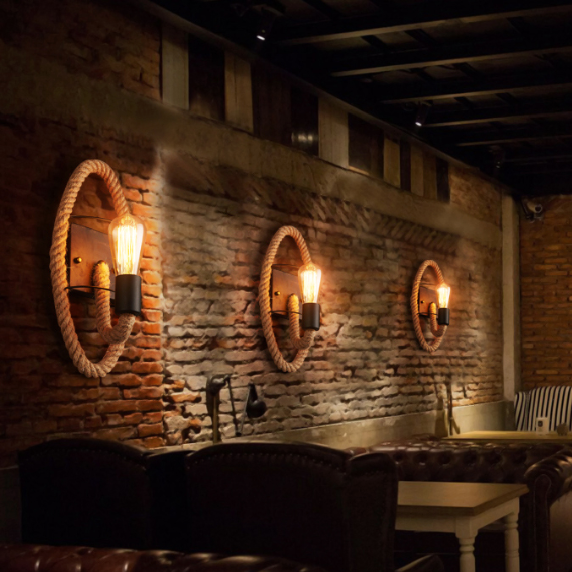 Rustik vägglampa med rep i vintage stil för sovrum och vardagsrum