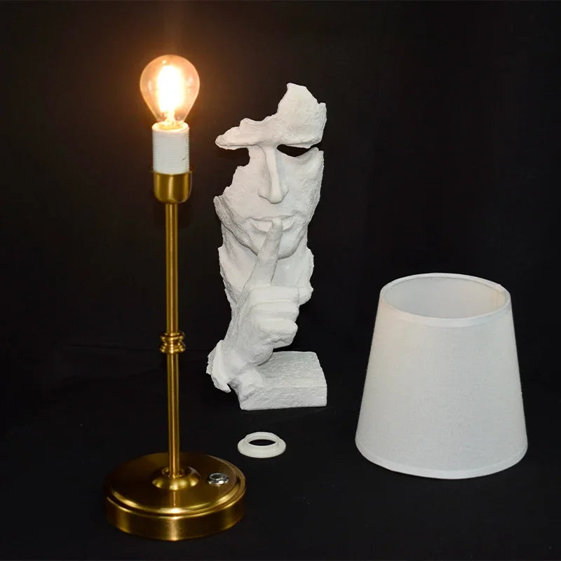 Denna eleganta bordslampa kombinerar modern design med tidlös elegans. Den guldfärgade mässingsfinishen och den mjuka tygskärmen sprider ett behagligt ljus som skapar en varm och inbjudande atmosfär.