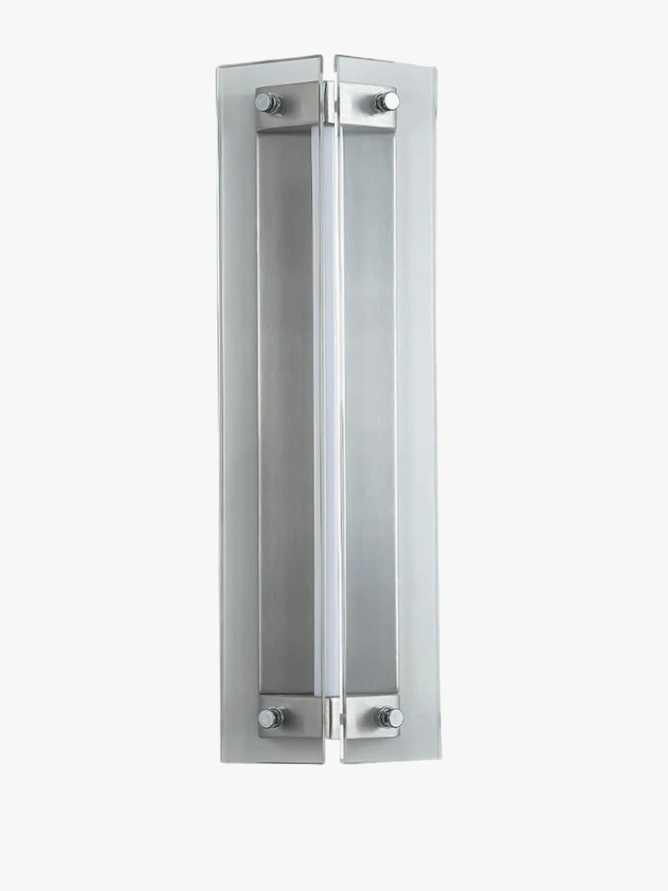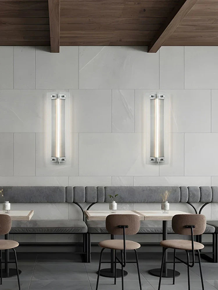Vägglampa i glas med modern och antik design i rostfritt stål