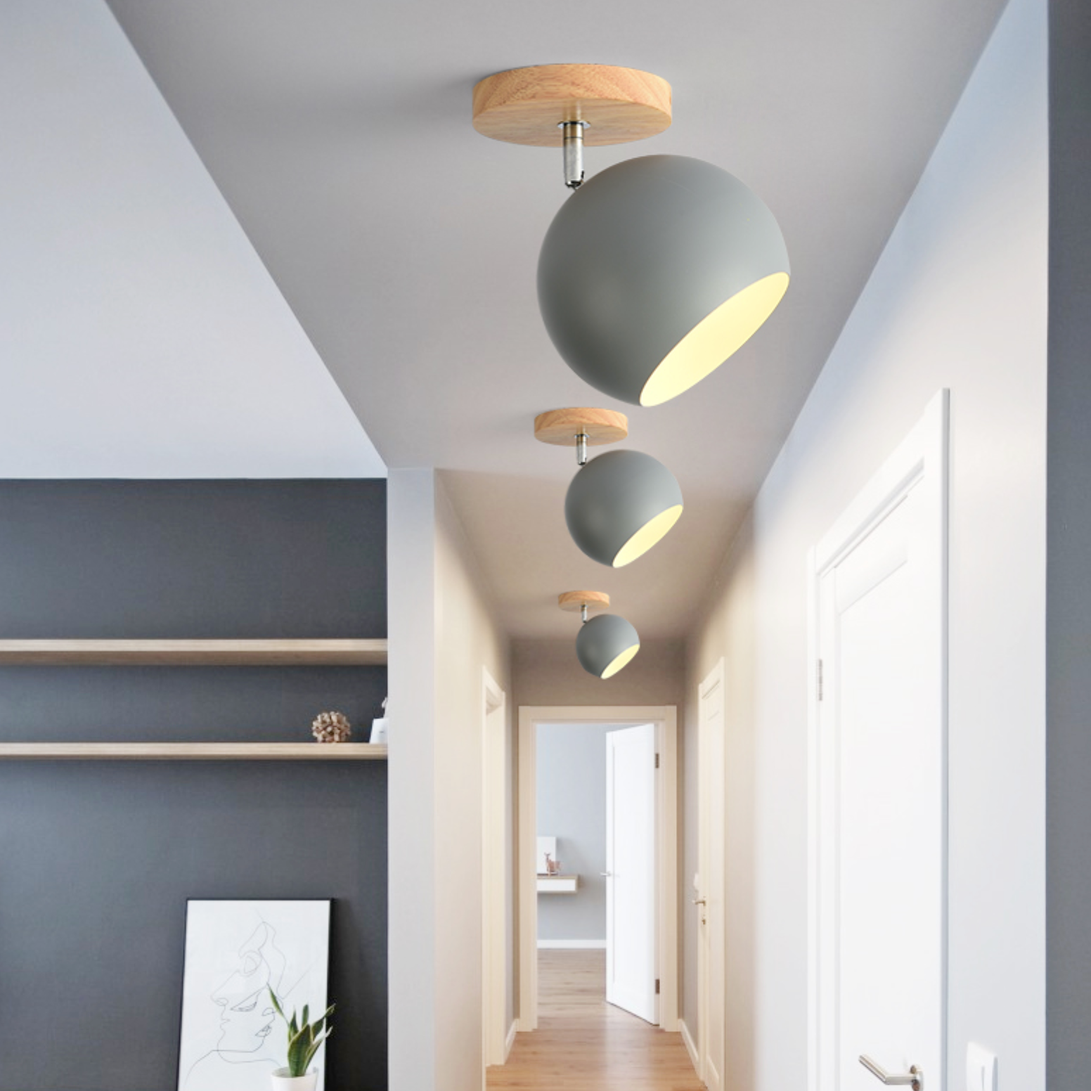 Lampan monteras med en dekorativ träplatta mot väggen och har en justerbar arm som gör den enkel att rikta efter behov. Den finns i flera färger – vit, grå, rosa, svart, gul och grön – för att passa olika inredningsstilar.