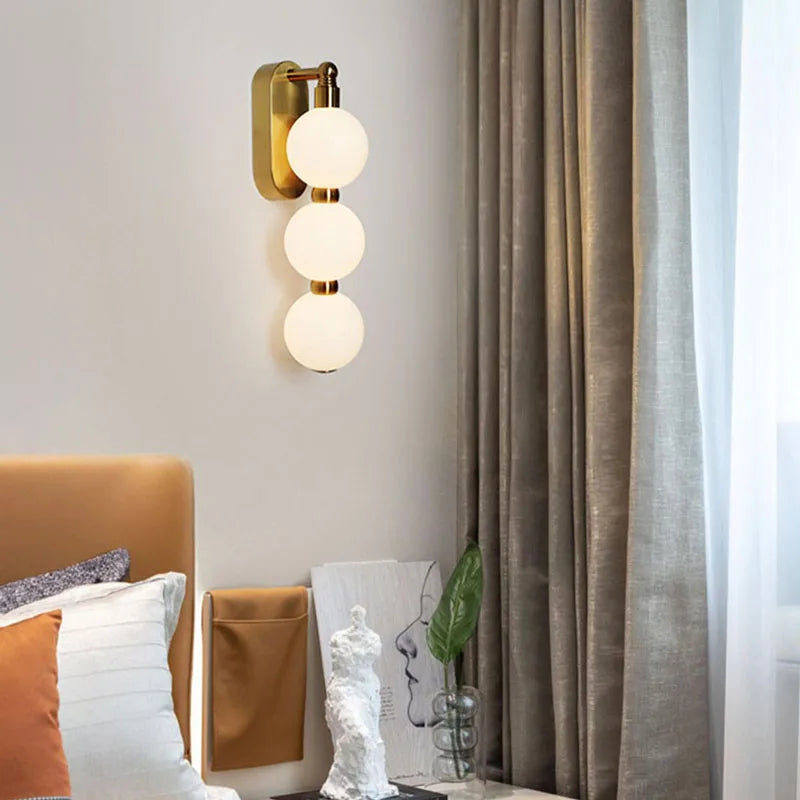 Vägglampa med tre akrylkulor och gyllene metallbas